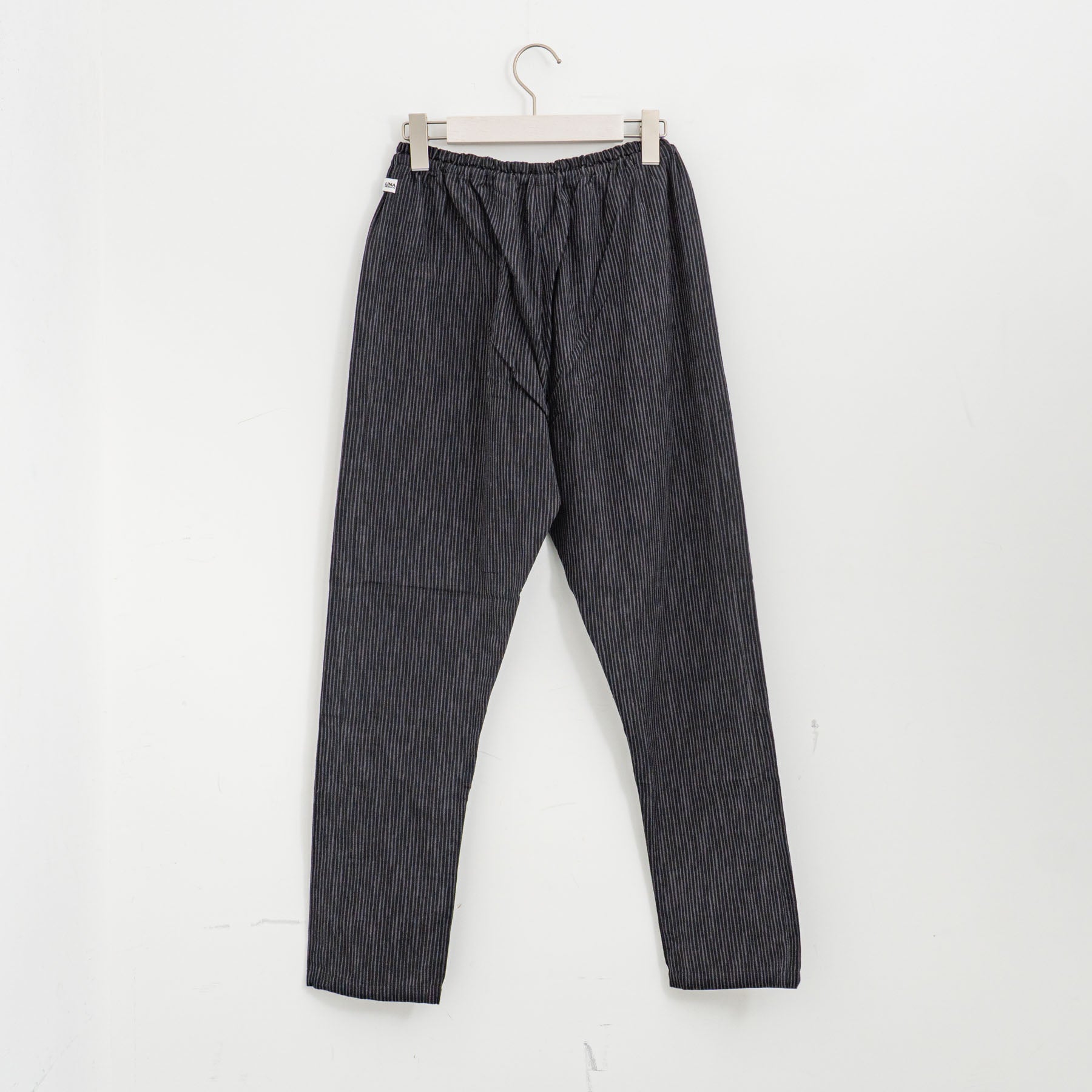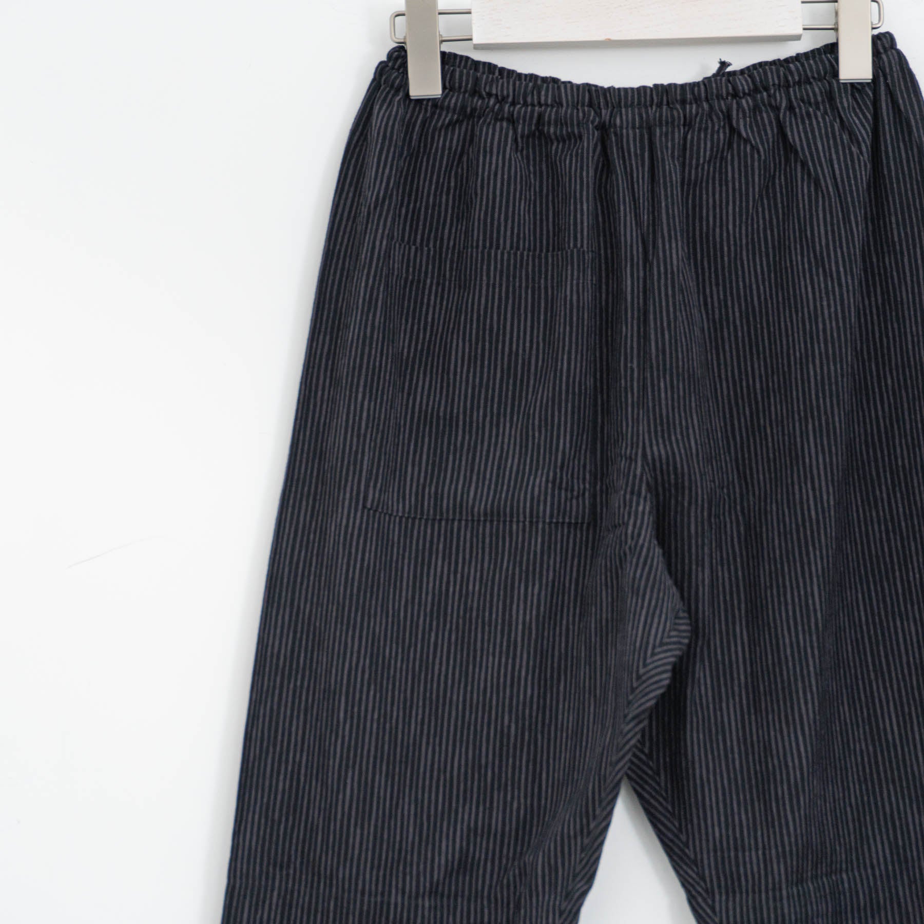 うなぎの寝床の現代風もんぺは、反物や着物の布を活かしつつ、着尺幅36cmを活かした簡易設計で、布を節約しながらも昔ながらのゆったり動きやすい機能を保持。細身でスマートなシルエットに仕上げています。