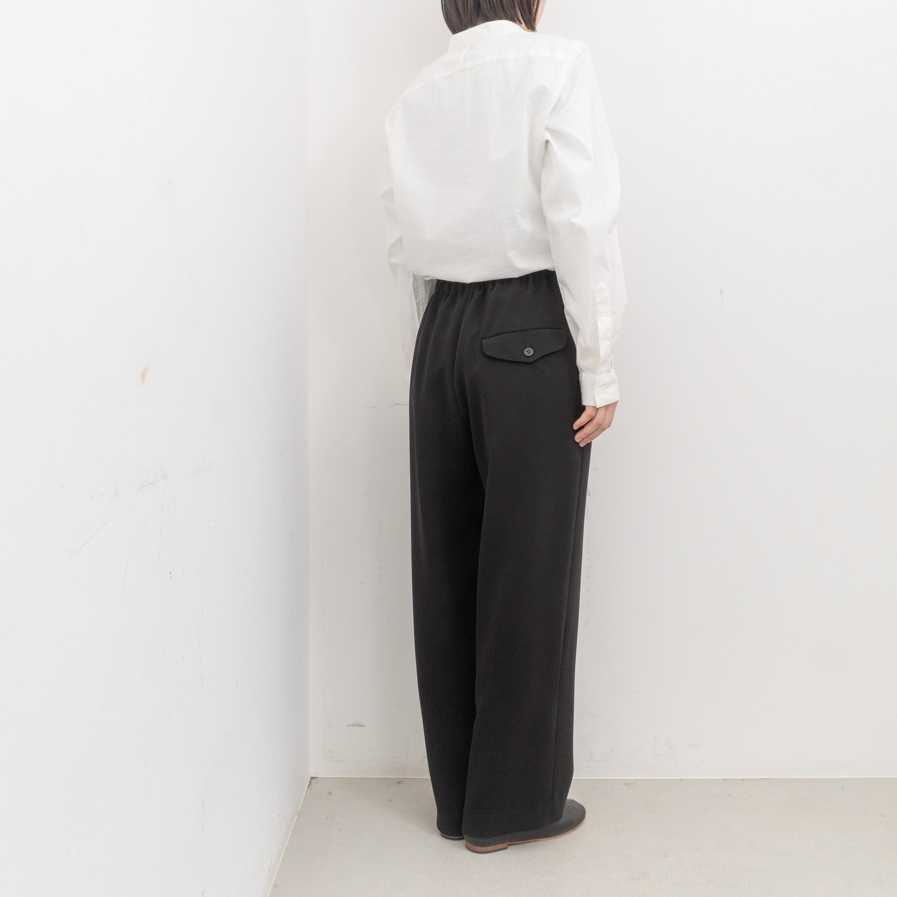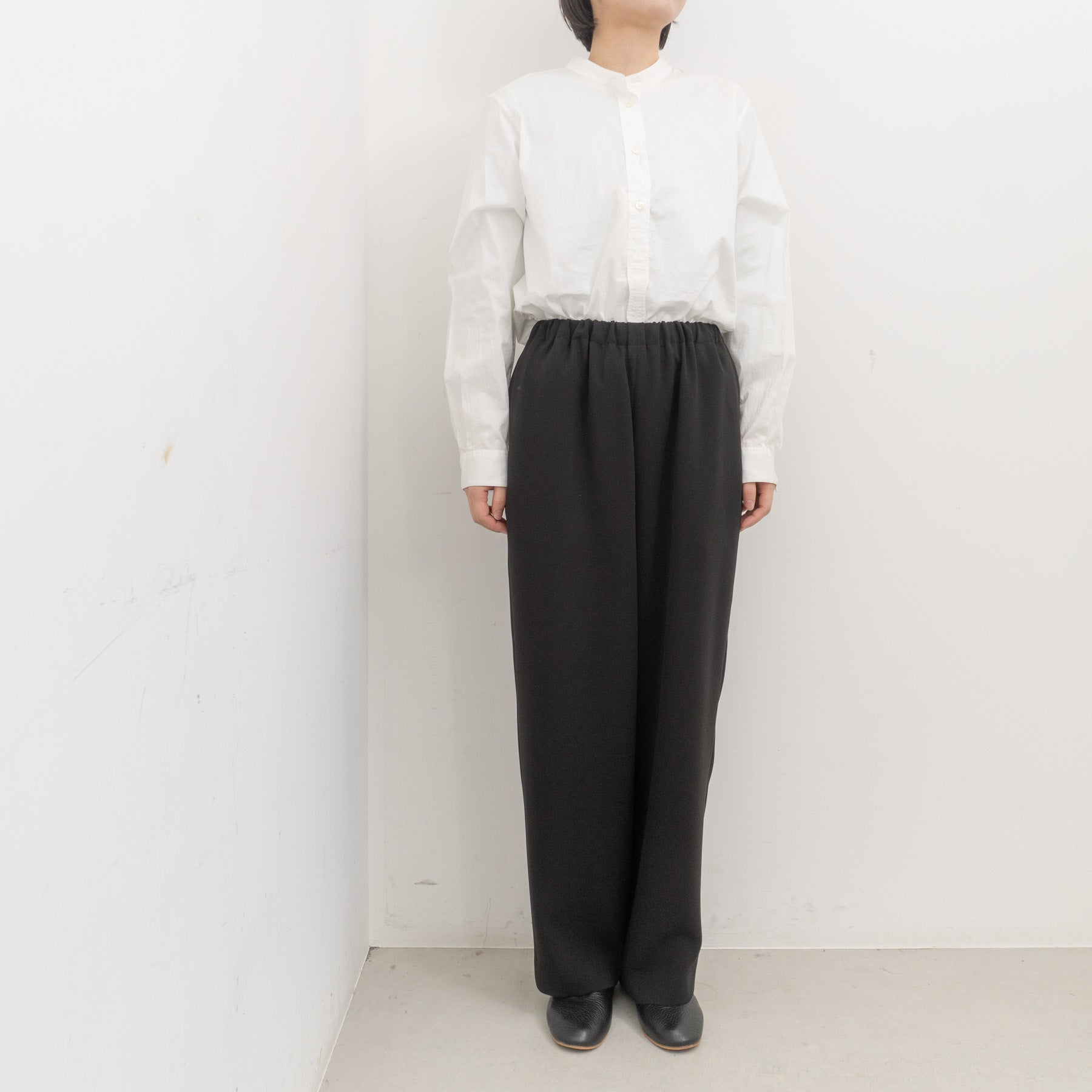 今シーズンはゴーシュ定番のワイドパンツから、股上を浅くしてノーマルに、ワタリも若干細くして、スッキリとしたシルエットになりました。