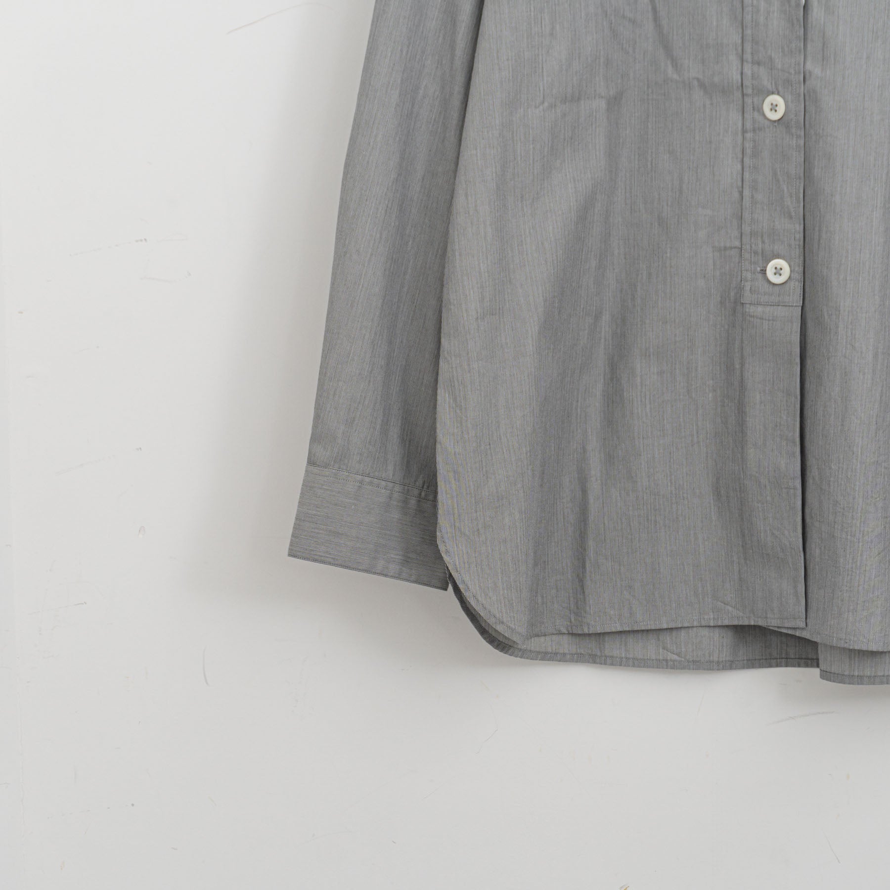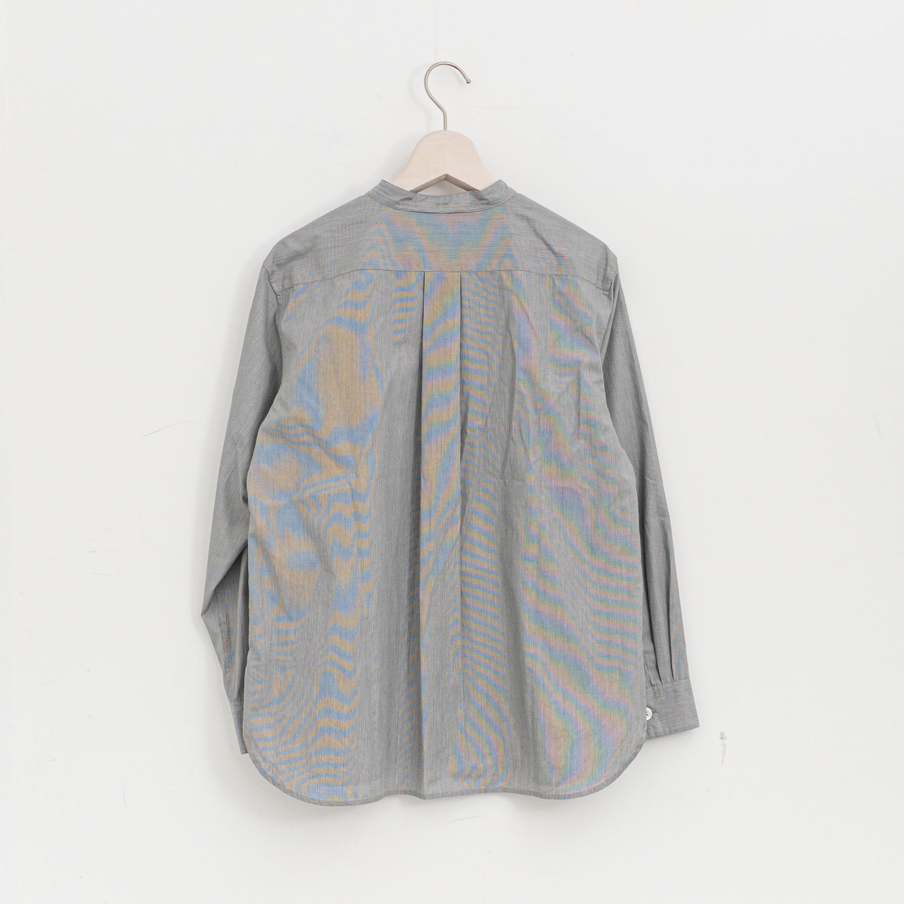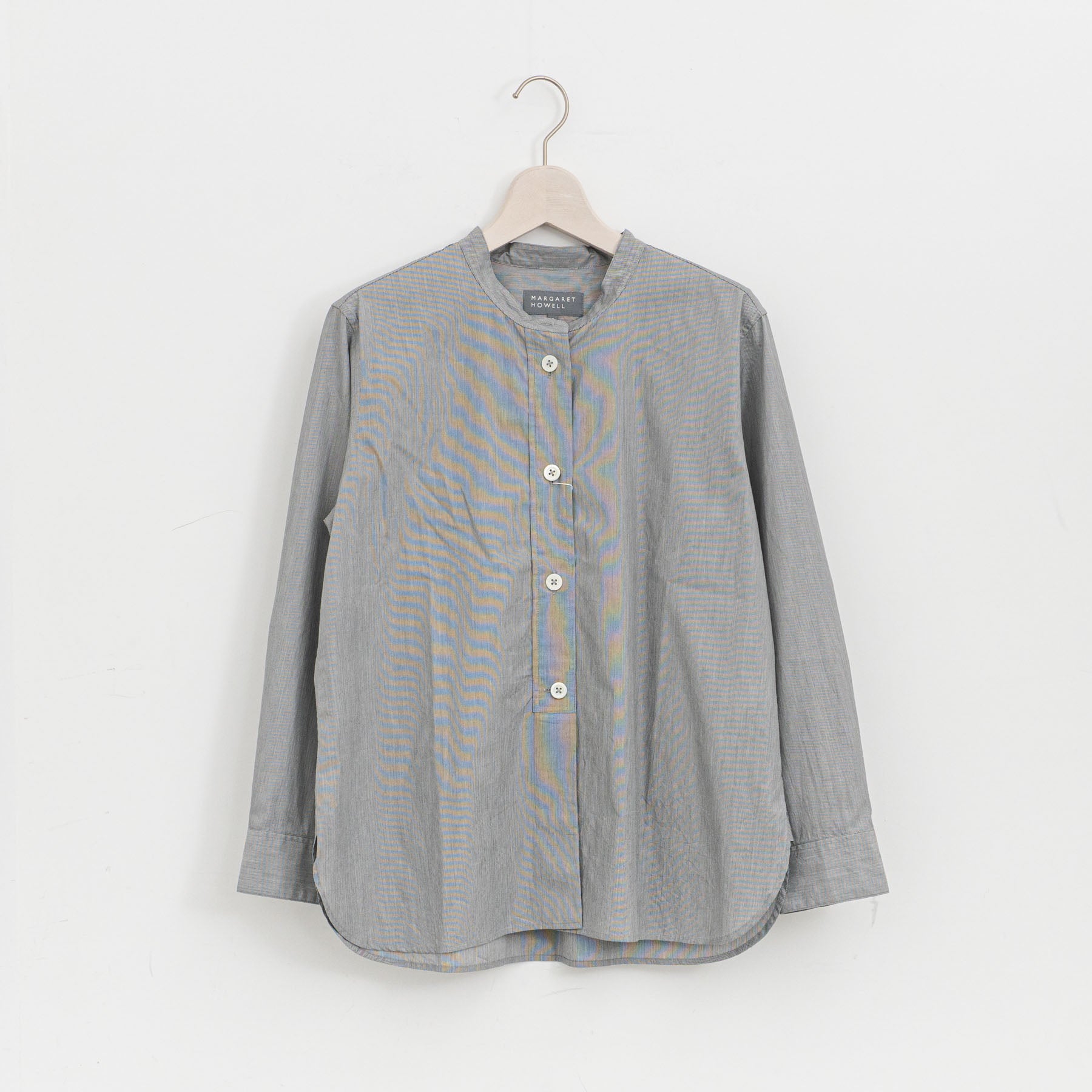 細番手のコットンを使用し、カラーとホワイトの経糸で織り上げたヘアラインストライプのシャツ。