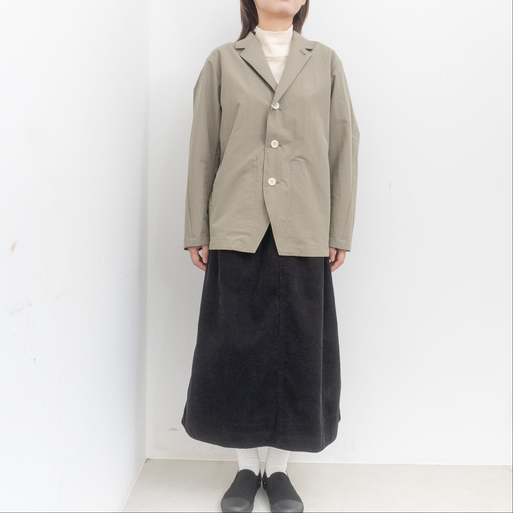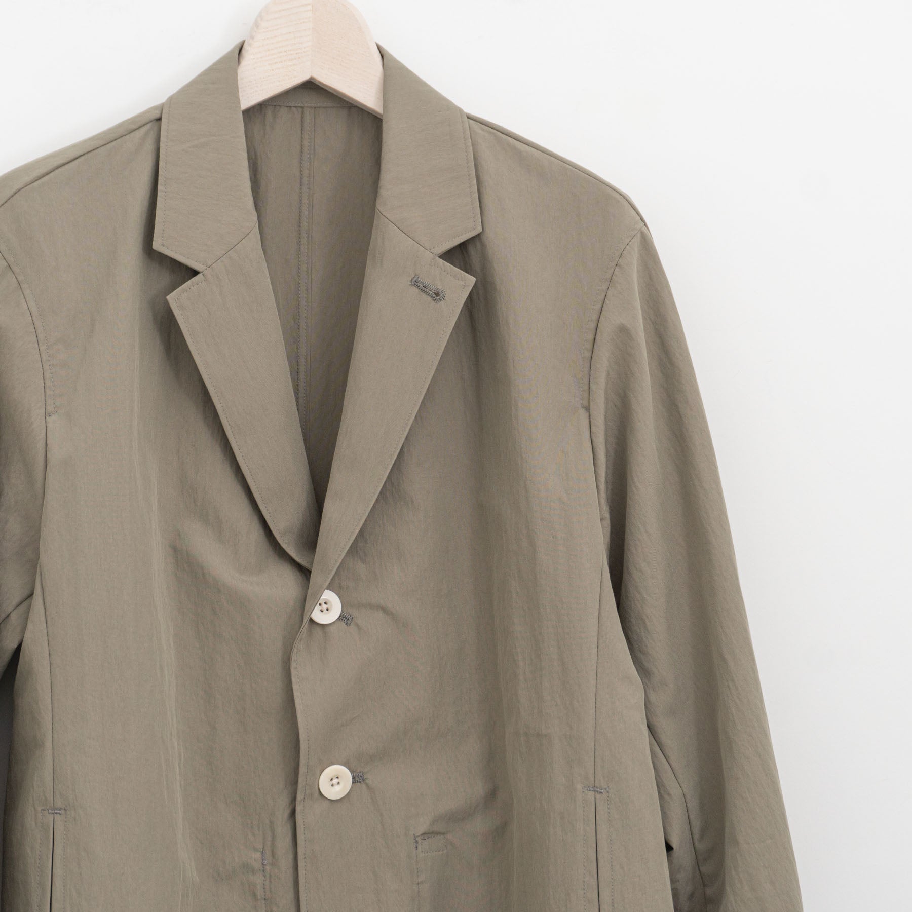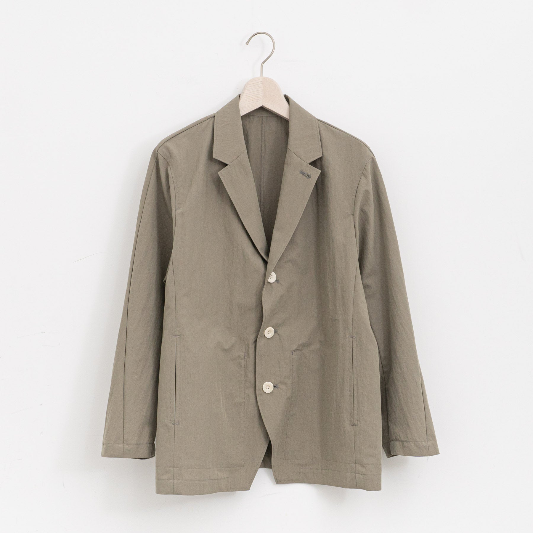 ナイロン混紡による、ほどよいシャリ感が心地よいブルゾンライクなジャケット。 背中側のみラグランスリーブを採用、立体的な縫製と組み合わせることで、動きやすさと美しいシルエットを両立しています。 脱いだ際に手で持たずに済むよう、肩から背負える調整式ストラップを内蔵しています。マグネットで着脱できる実用的な仕様で、アクティブなシーンでもスマートに着こなせる一着。