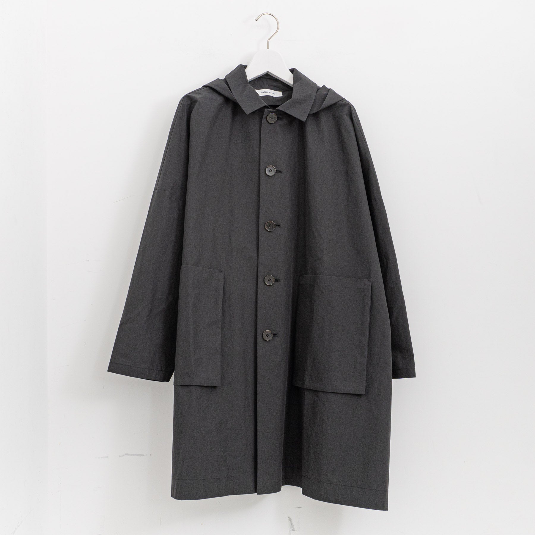 モードな装いにも、カジュアルなシーンにもなじむ、とても軽いフーデットコート。