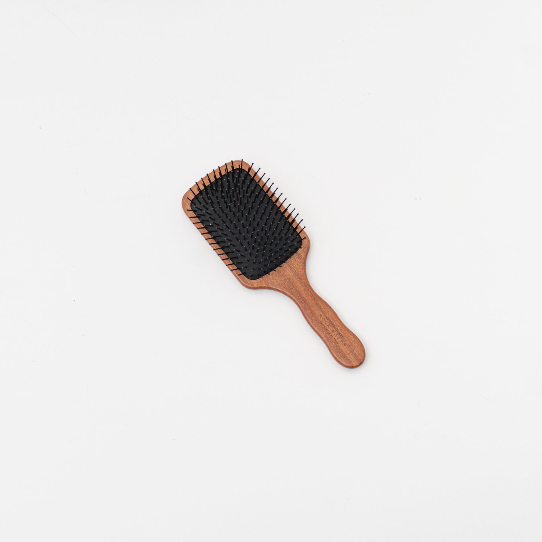 毛先を丸くしたブラシで頭皮を傷めにくい設計。 クッション部分は、天然ゴムを使用し独自の形状で圧力を吸収し、髪や地肌を心地よくマッサージ。 ※ブラシのクッション部分には空気圧を均一にする為の空気穴が開いております