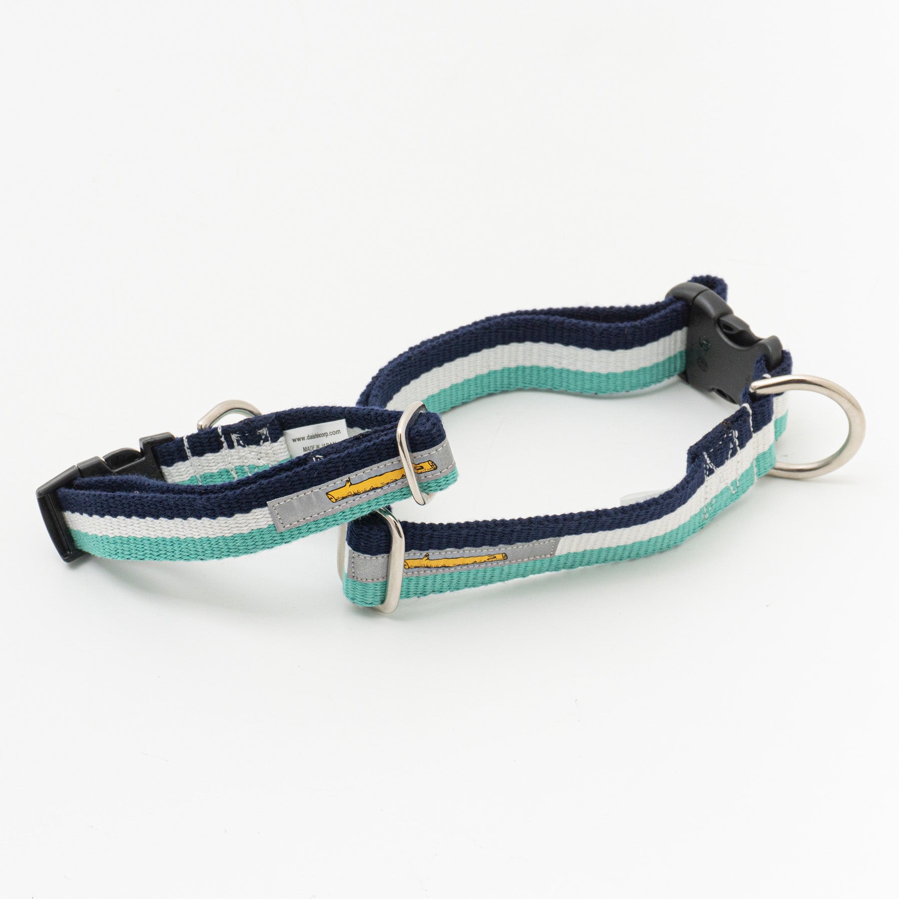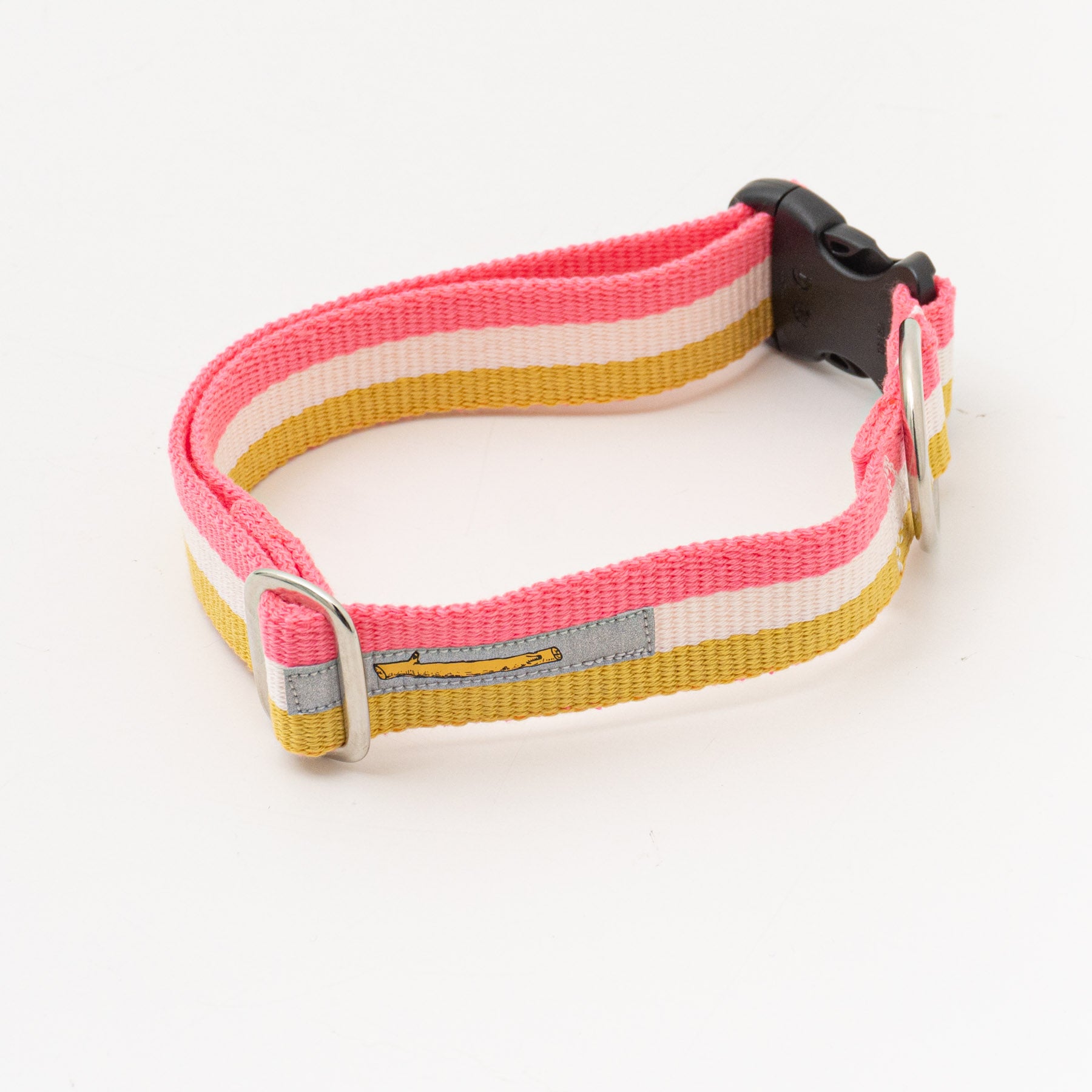 アジャスタブルタイプのため、わんちゃんの首周りに合わせて細かなサイズ調節が可能。バックルはカチッと簡単に留められ、着脱もスムーズです。