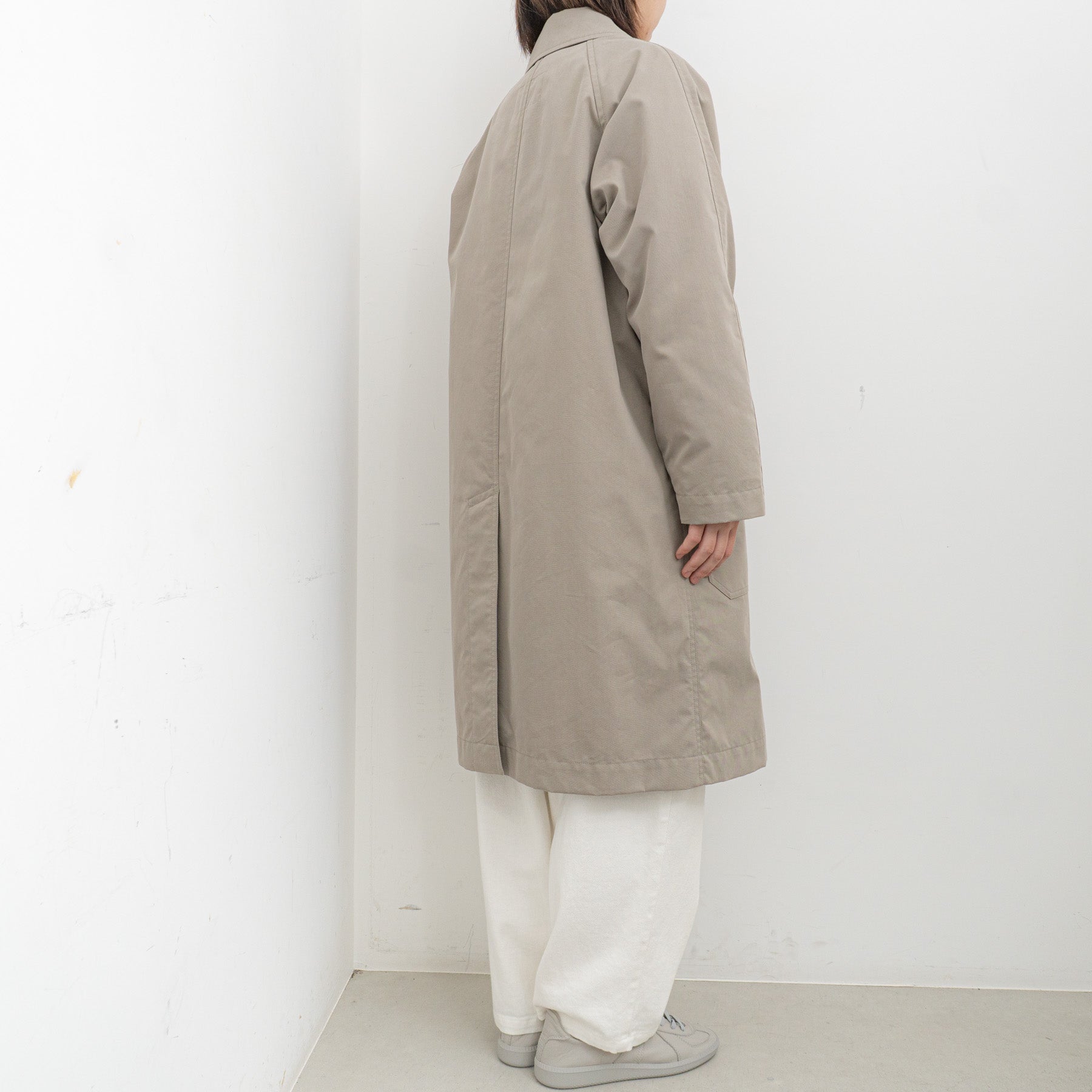 コットンとナイロンを組み合わせた、しっかりとしたハリとドライな風合いが特徴のコート。