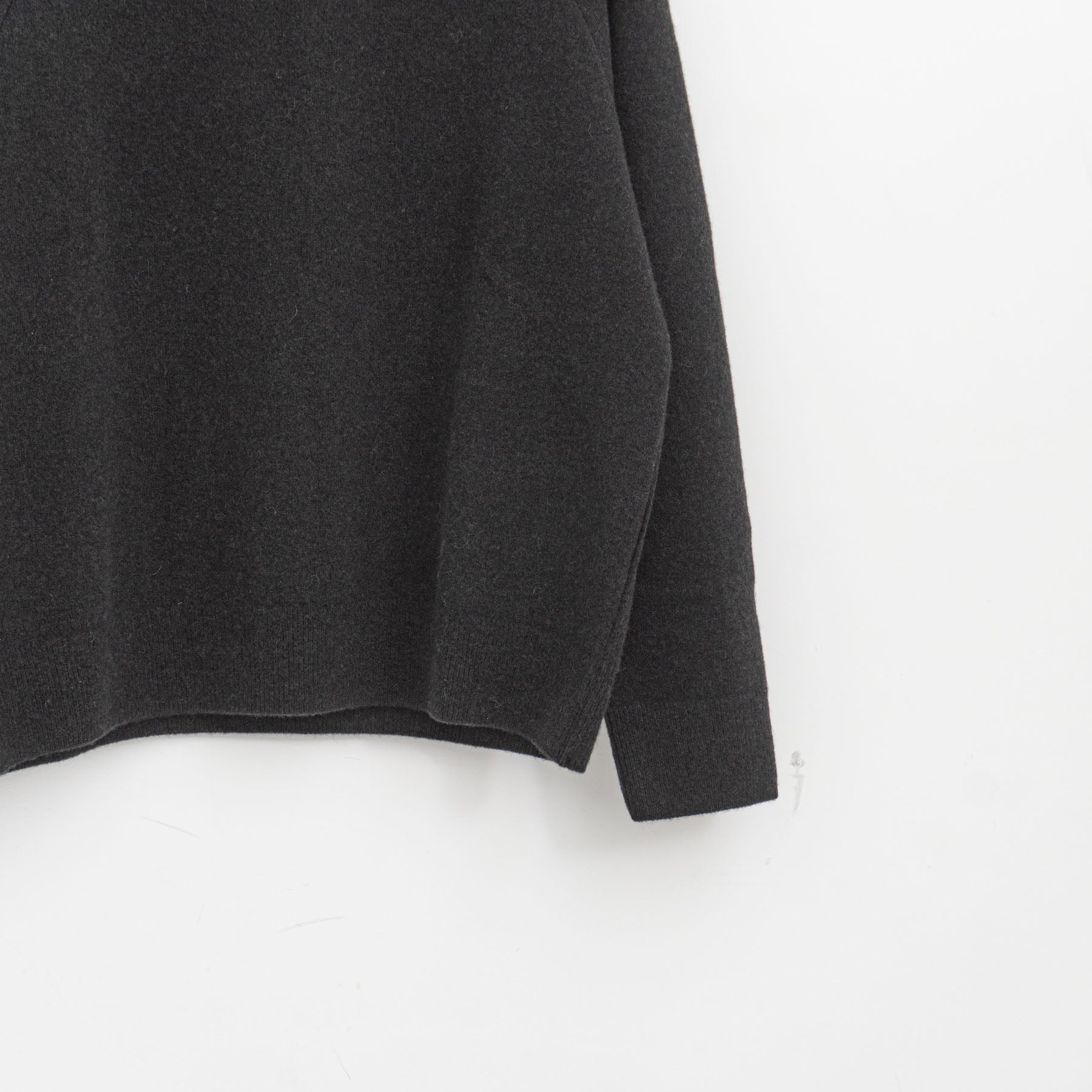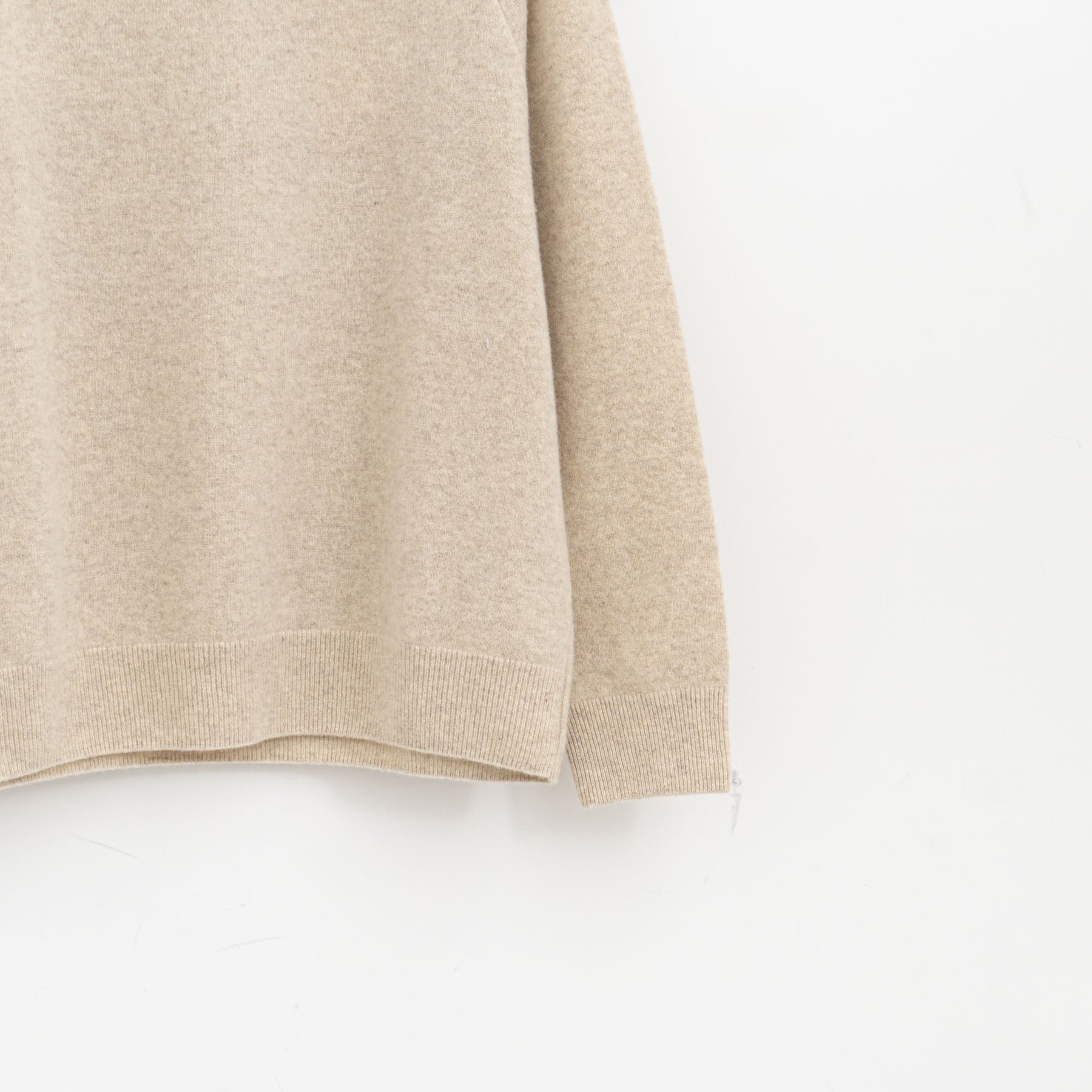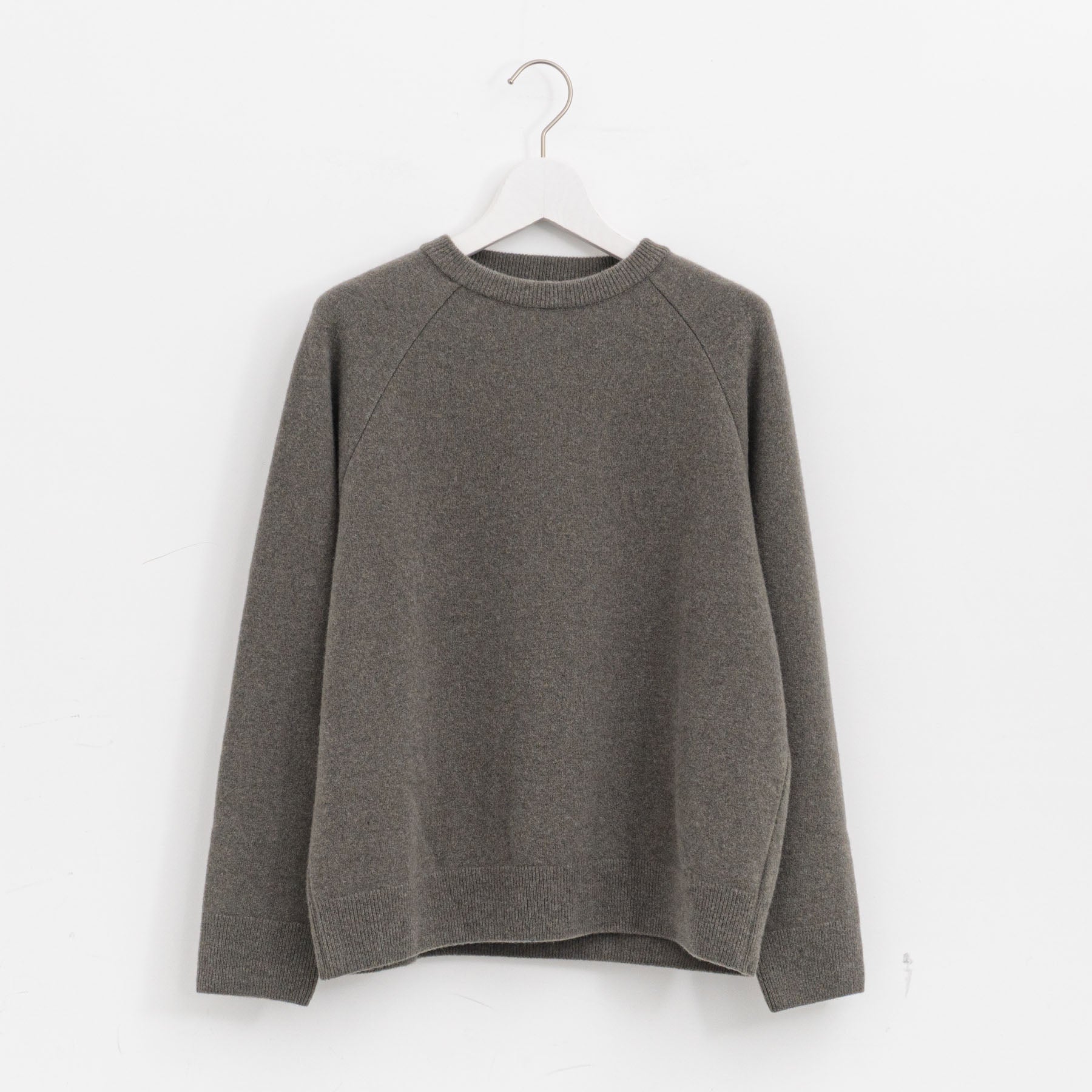 膨らみのあるメリノウールを強縮(プレス)加工し、ほどよくラフな表情に仕上げたニットシリーズです。カジュアルになりすぎず、上質で大人らしい着こなしを楽しめる一枚。