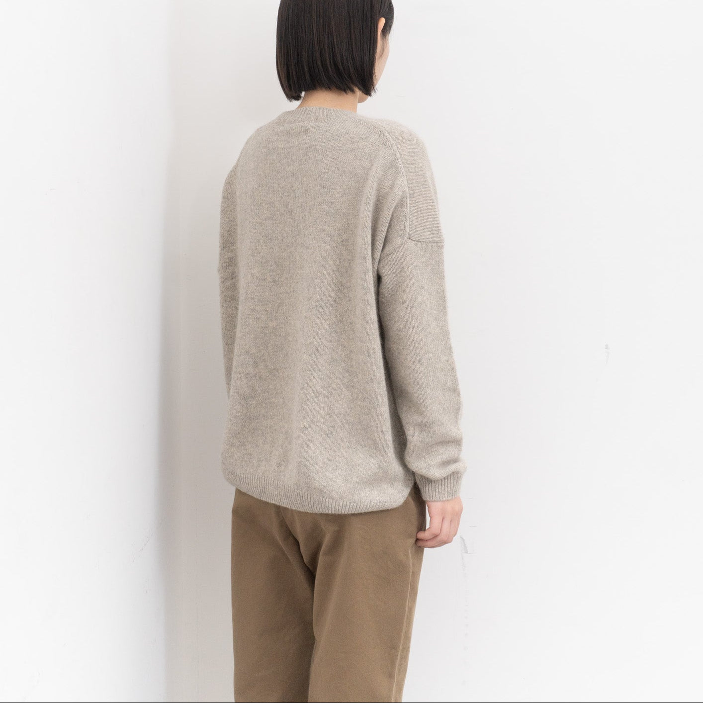 数色の綿を混ぜ合わせて染めることで、自然な奥行きのある色合いに仕上げています。 軽やかな着心地ながらしっかりとした嵩高(かさだか)さがあり、カシミヤやウールと並ぶほどの高い保温性を備えています。