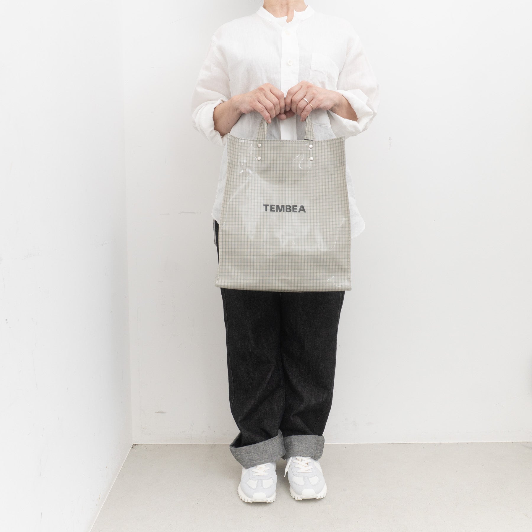 紙袋をイメージして作ったトートバッグ。シャツ生地にPVCコーティングを施し、防水性、耐久性を保たせています。 濡れても汚れてもサッと拭き取れるので、ちょっとした雨の日にも使えます。
