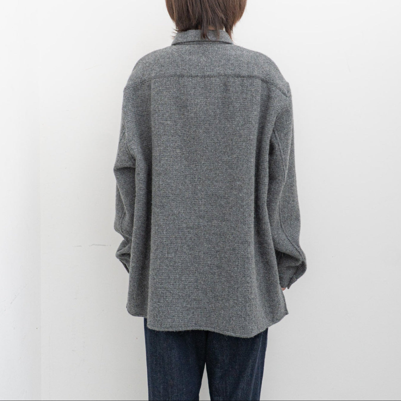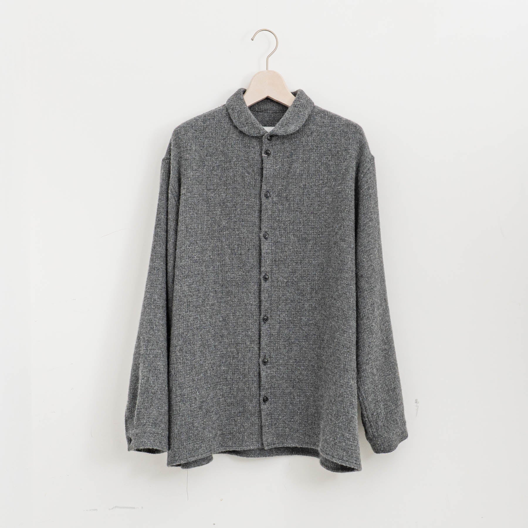 ベーシックなオーバーサイズシャツ「TYPE B」をベースにしたラウンドカラーバージョン。クラシックな雰囲気にモダンな要素を取り入れ、幅広いスタイルにマッチする一着です。 生地は独自に開発した“ワッフル風ドビー織”。本来のワッフル素材が持つ「保温性」「肌離れの良さ」といった魅力を活かしつつ、伸びやすさや型崩れ、縮みなどの欠点を解消しました。 ベビーアルパカとウールをブレンドすることで、ふんわりとした贅沢なタッチに。見た目はニットのようでありながら、織物ならではの安定感あるシルエットを楽しめます。まさに“未来のセーター”とも呼べる素材です。