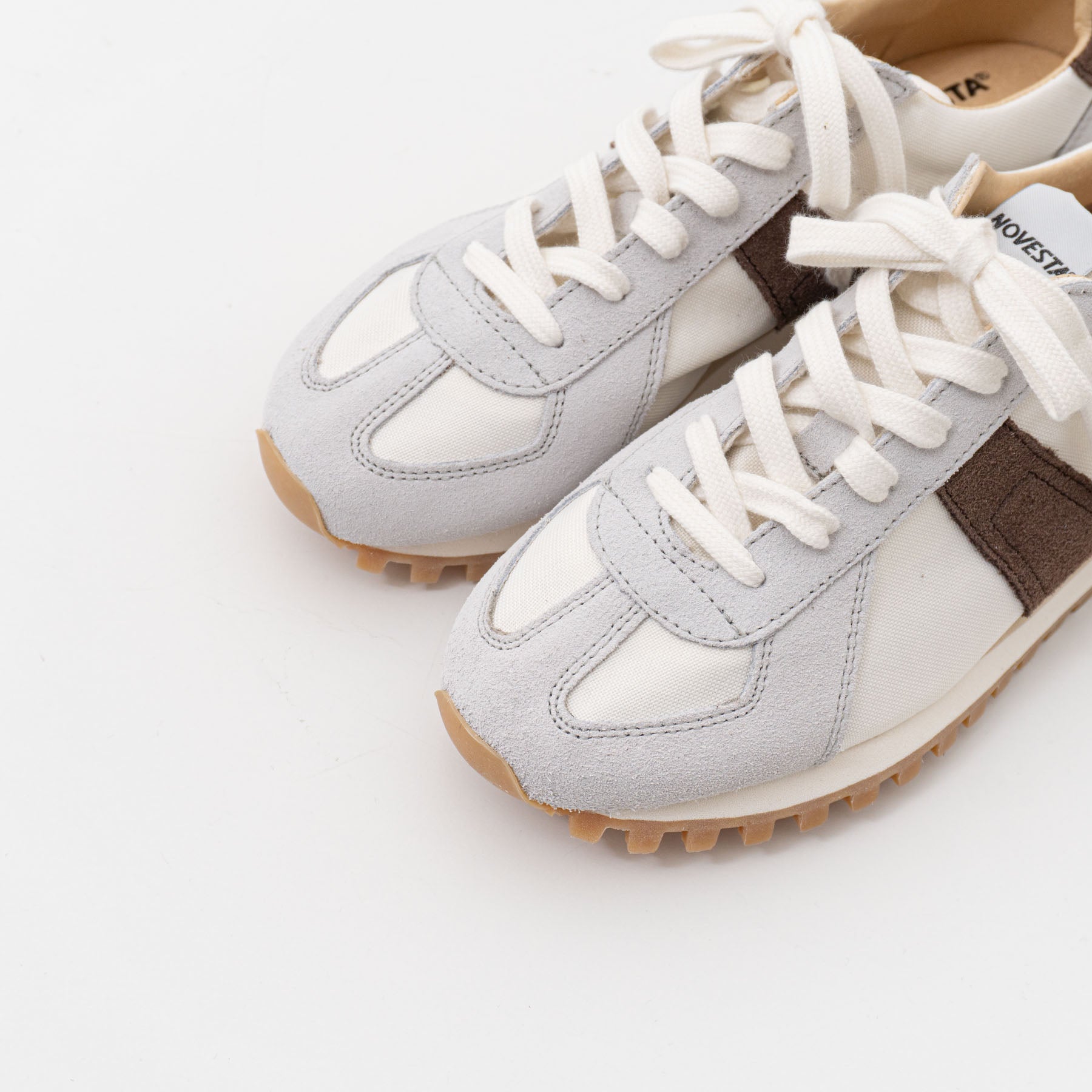 NOVESTA (ノベスタ):チェコスロバキアのパルチザンスケ(Partizánske)という町。1939年、NOVESTA(ノヴェスタ)はその小さな町にある歴史的な工業地区バタ・インダストリアル・パーク(BATA Industrial Park)の中にひっそりと誕生しました。ラバーとキャンバスの製品に特化した靴工場は、第二次世界大戦、戦後の冷戦、社会主義時代や国家分裂の歴史の流れを経て現在まで、ミリタリー、ワーク、ラバーブーツ、ランニングシューズなど、純スロバキア産のフットウェアを創業から一貫して作り続けてきました。チェコ・スロバキアが分裂する一年前の1992年、創業から半世紀の間にヨーロッパを代表する工場として名を上げ、純スロバキア産スニーカーブランドのNOVESTAを立ち上げます。以来、NOVESTAはオリジナルブランドとして成長を続けながら世界各国のブランドと共に多様なコラボレーションプロジェクトを世界に発信しています。NOVESTAはヨーロッパの繊細さ、そして東欧の素朴な質感が残るハンドメイドスニーカーを作り続けています。