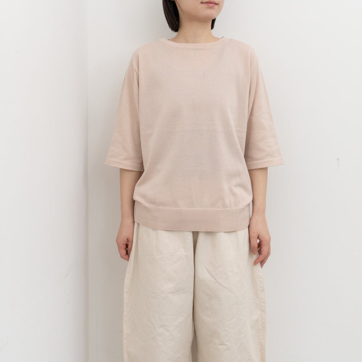 クリアでシャープな編み目と、さらりとスムースな肌触りが特徴で、春夏に心地よい素材感です。