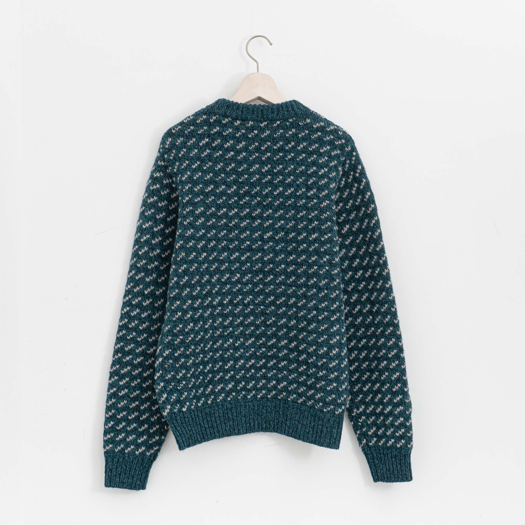 上品なバーズアイ柄を採用した、クルーネックのクラシックな一枚です。