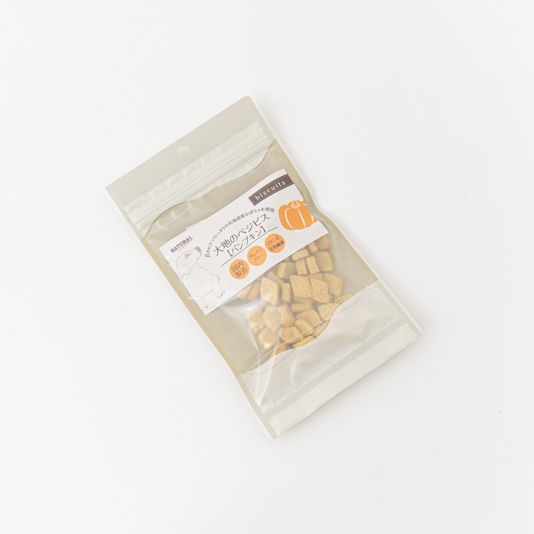 ベルギーで収穫されたじゃがいもをベースに全て国産食材を使用したグレインフリービスケット。 βカロテンをたっぷりと含む北海道産かぼちゃを使用。