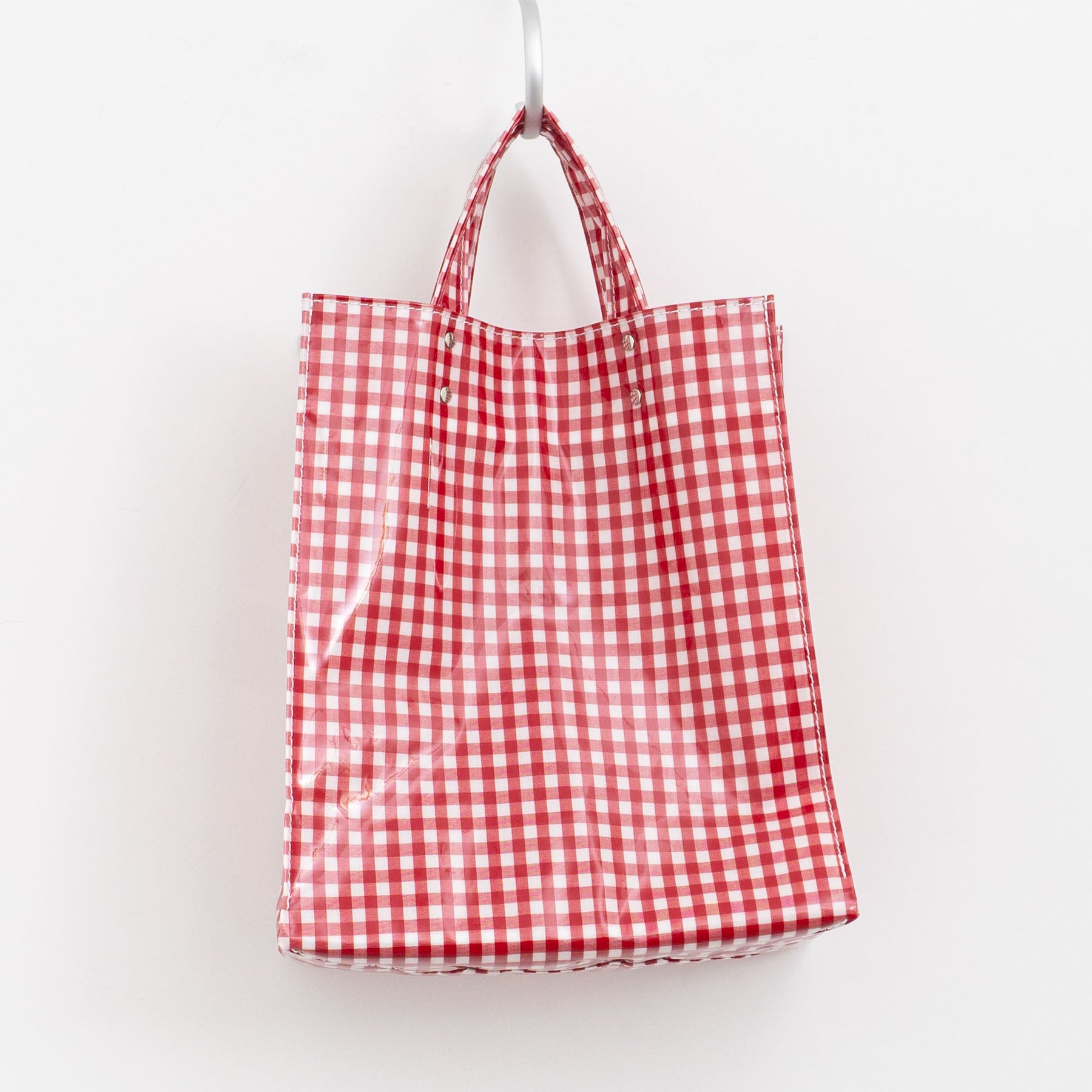 紙袋をイメージして作ったトートバッグ。シャツ生地にPVCコーティングを施し、防水性、耐久性を保たせています。 濡れても汚れてもサッと拭き取れるので、ちょっとした雨の日にも使えます。