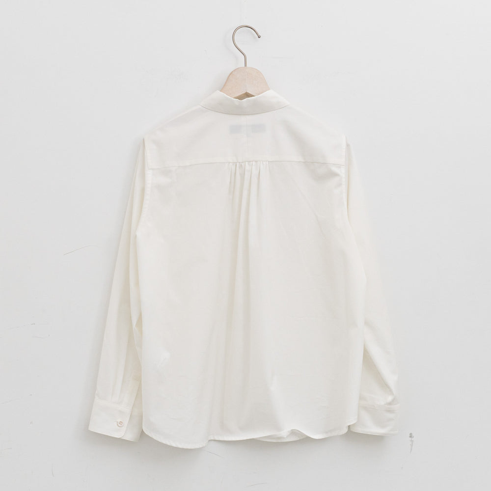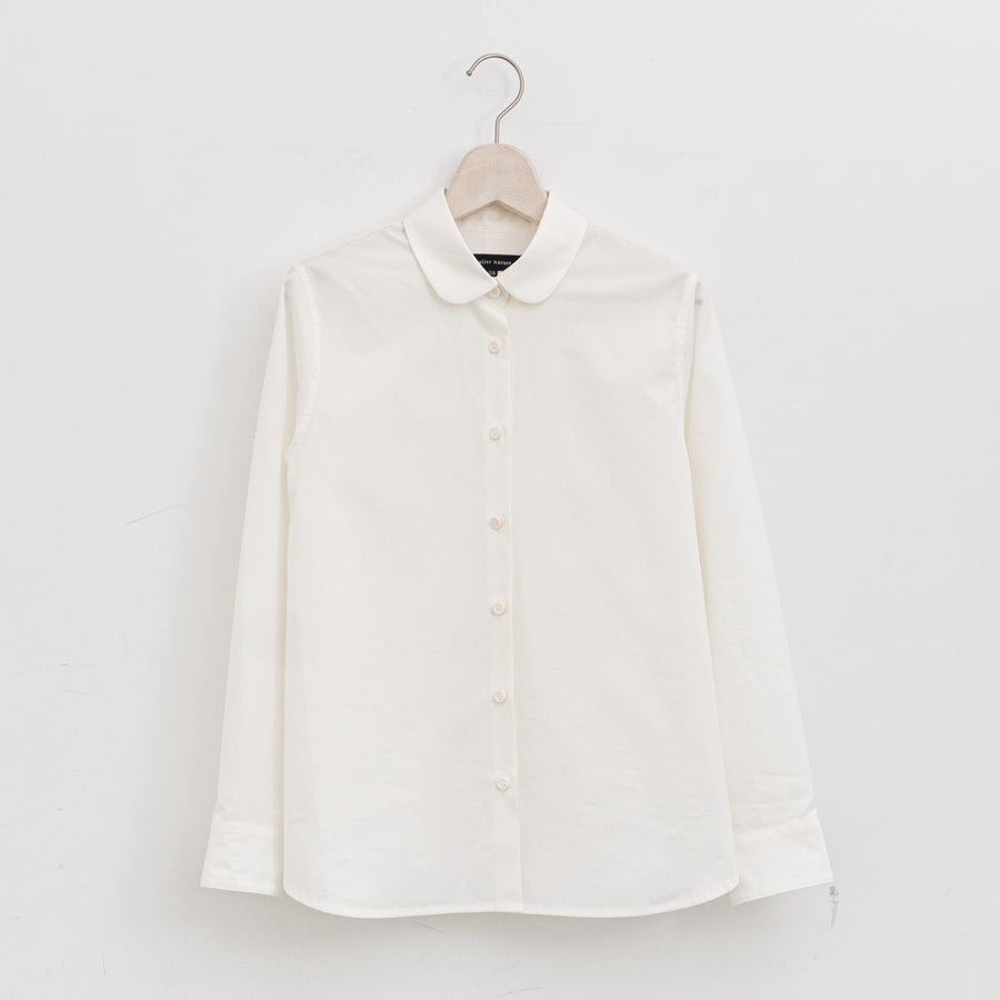 ラムズウール素材は、熱や汗を放出し温度調節に長けているけれど、洗うと縮みやすいという羊の毛そのものの特徴が。一方リネンはやや硬さのある素材感で縮みにくい性質があります。その2つを撚り合わせた糸のニットは、型崩れしにくく清涼感があり、ウールの醸し出すやさしい風合いが味となって表れています。ロングスリーブTシャツのような感覚で着られ、春から暑くなるまでの間や秋が深まる頃と、意外と長く愛用できるのも便利。横に広がりすぎないボートネックも気軽に着られるディテールです。