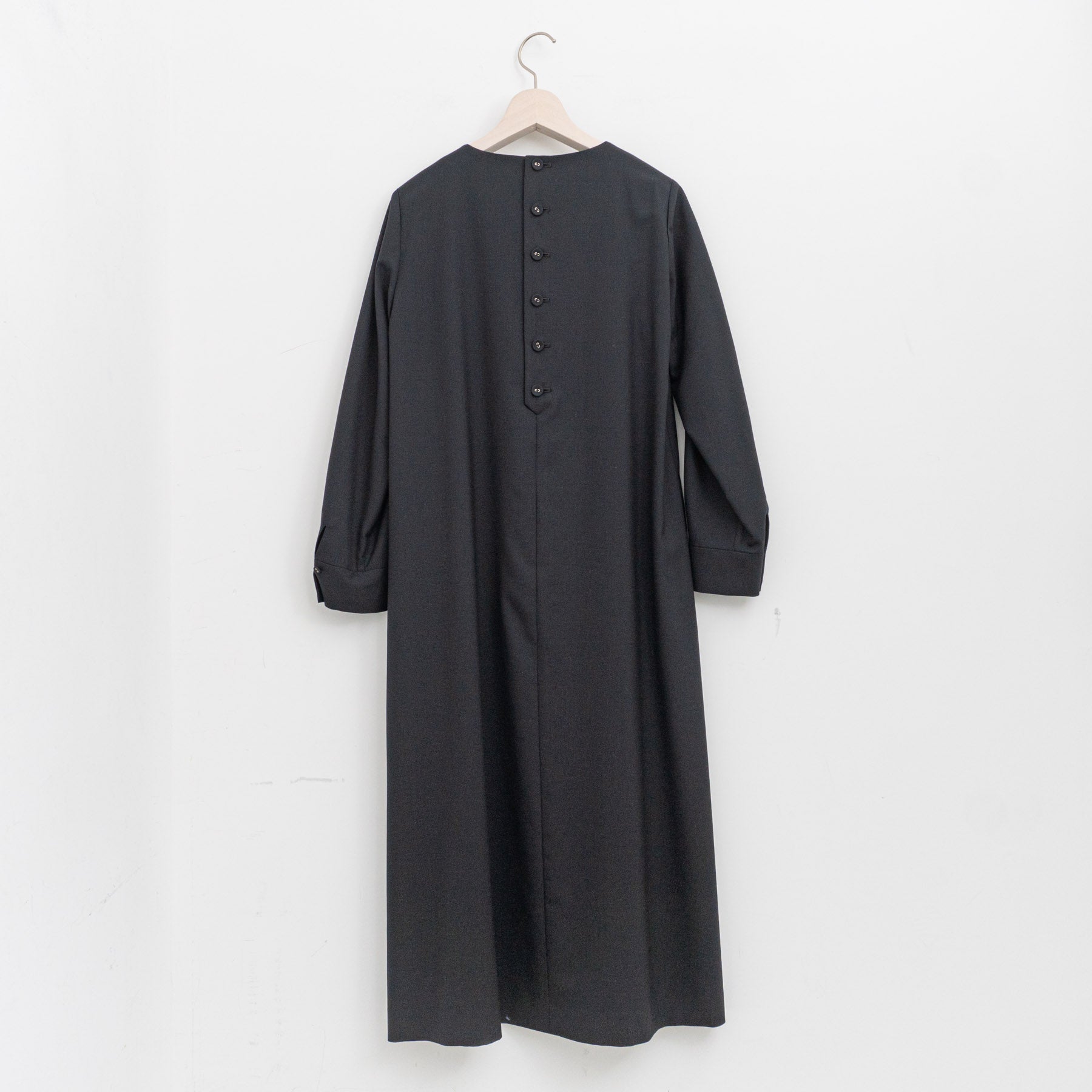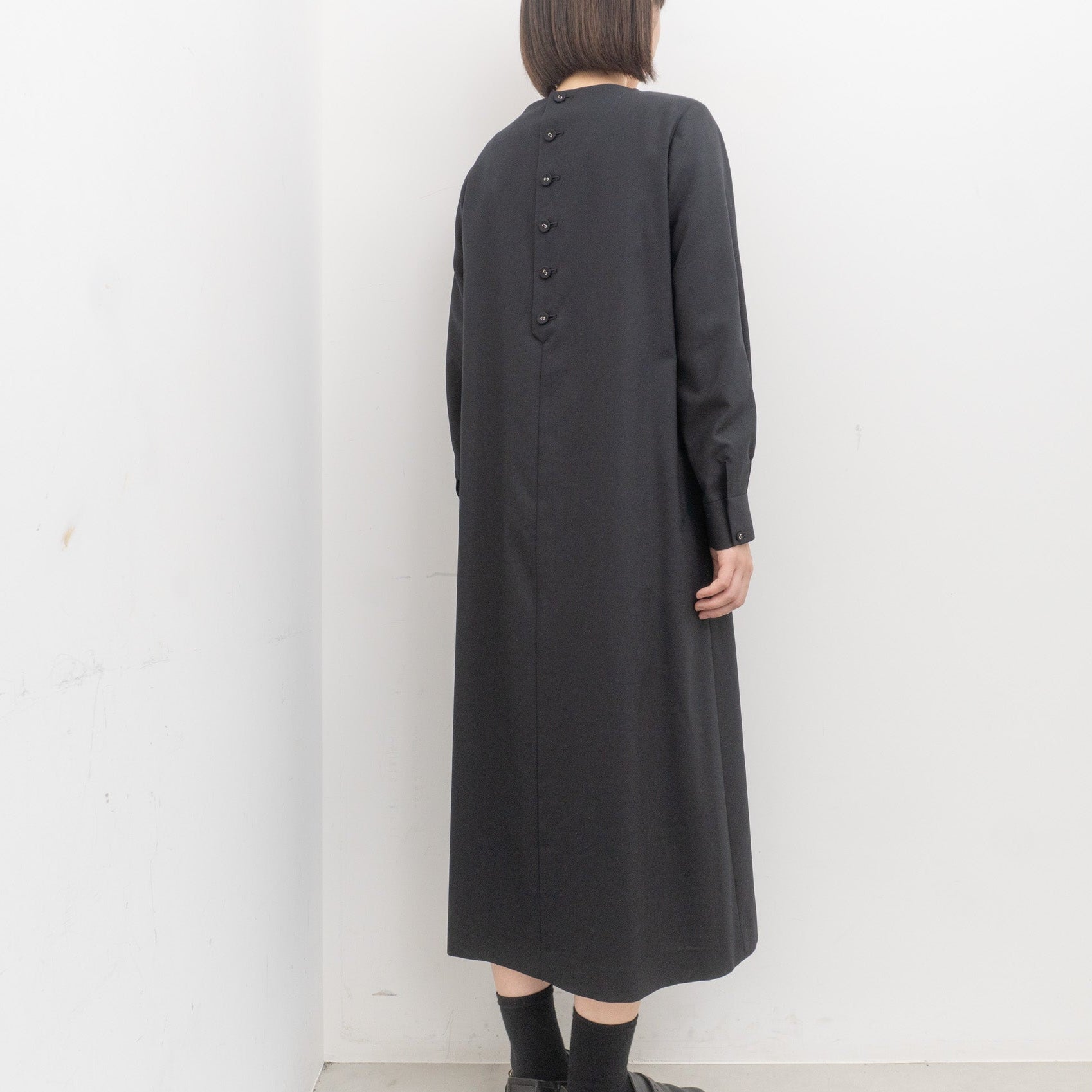 さらに、後ろボタンの持ち出し部分の繊細なカーブ、袖カフスに並ぶピンタック、ボタン位置の美しいバランスなど、随所に小さな工夫が潜みます。