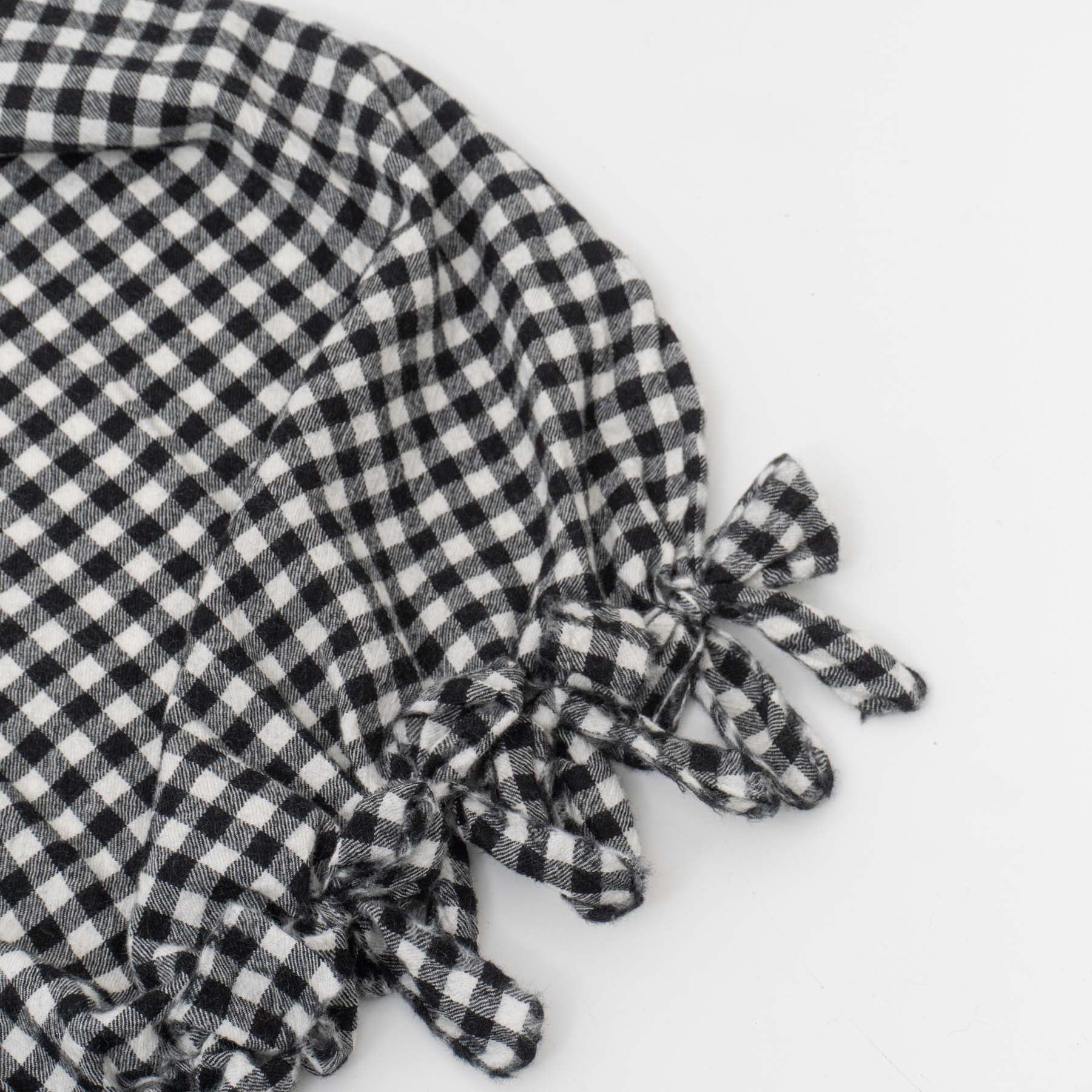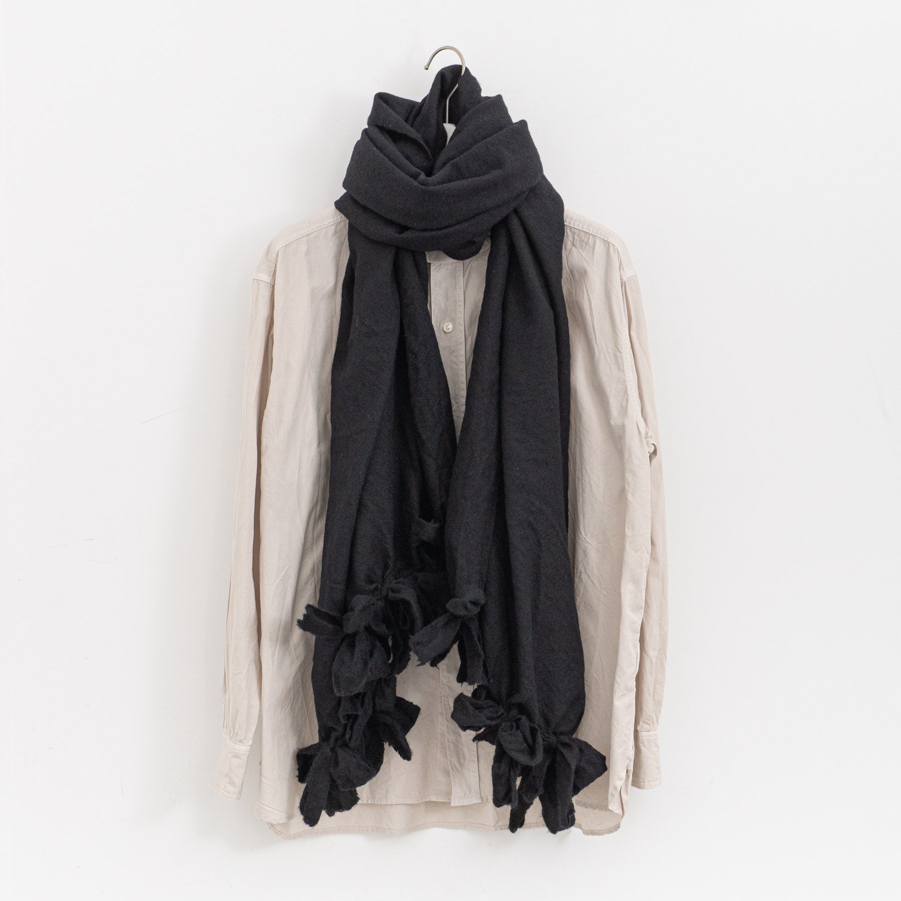 端をリボン結びにしたデザインが特徴で、ほどよいボリューム感と華やかさを演出。