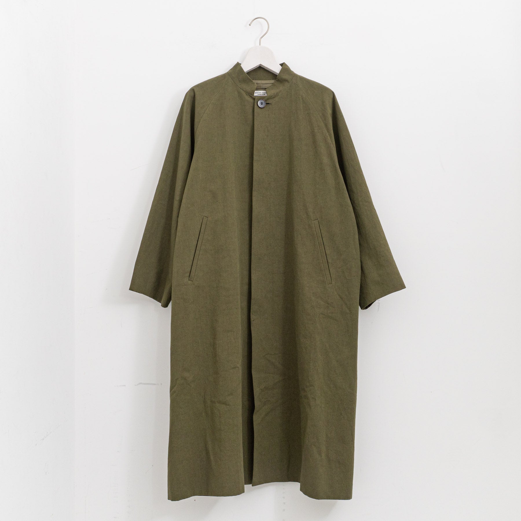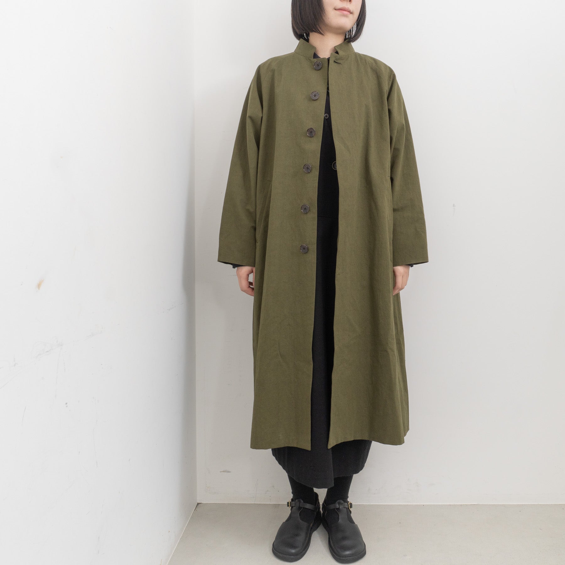・ロング丈でゆったりとしたサイズ感のスタンドカラーコート