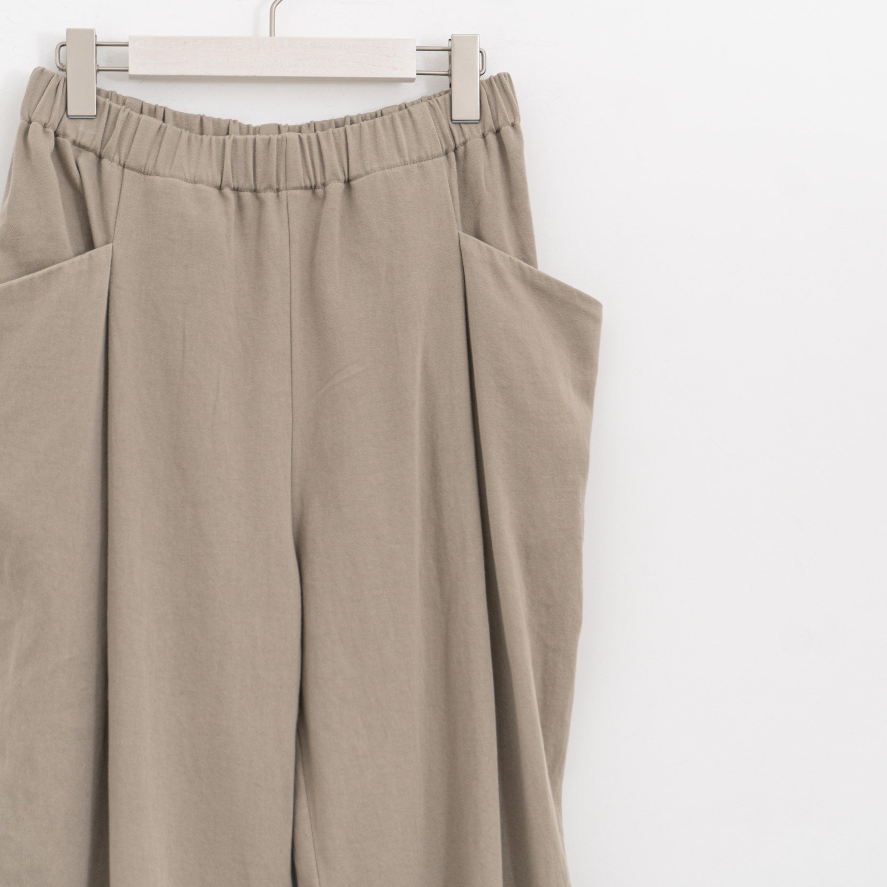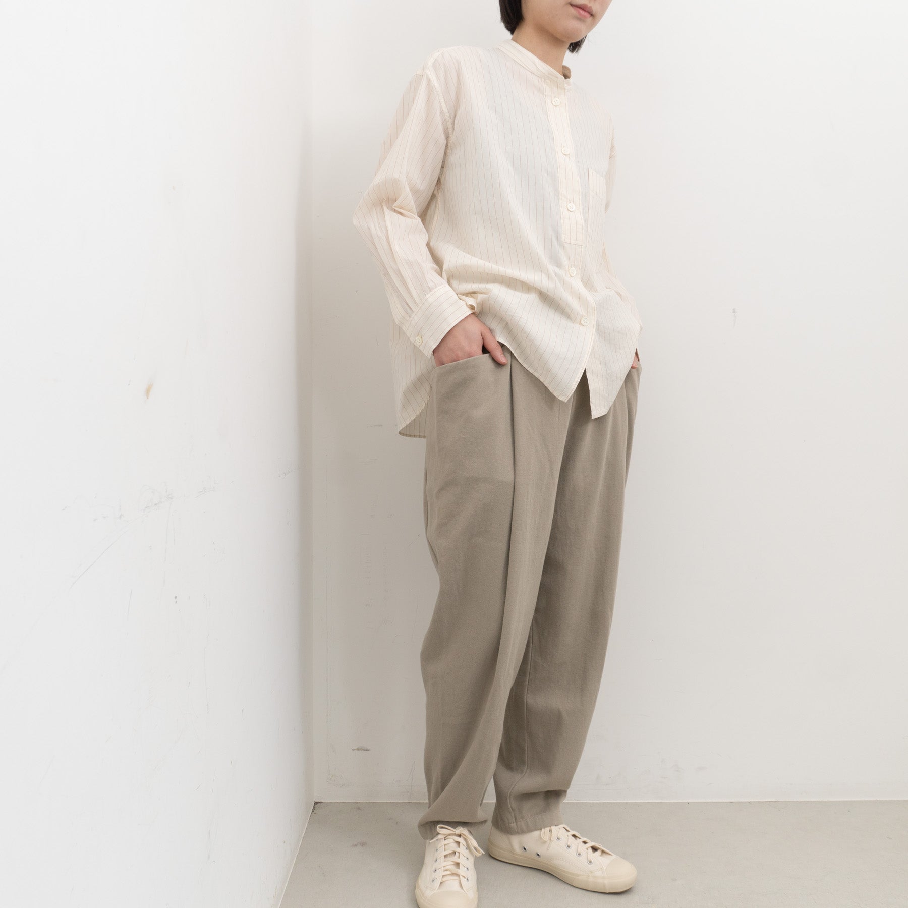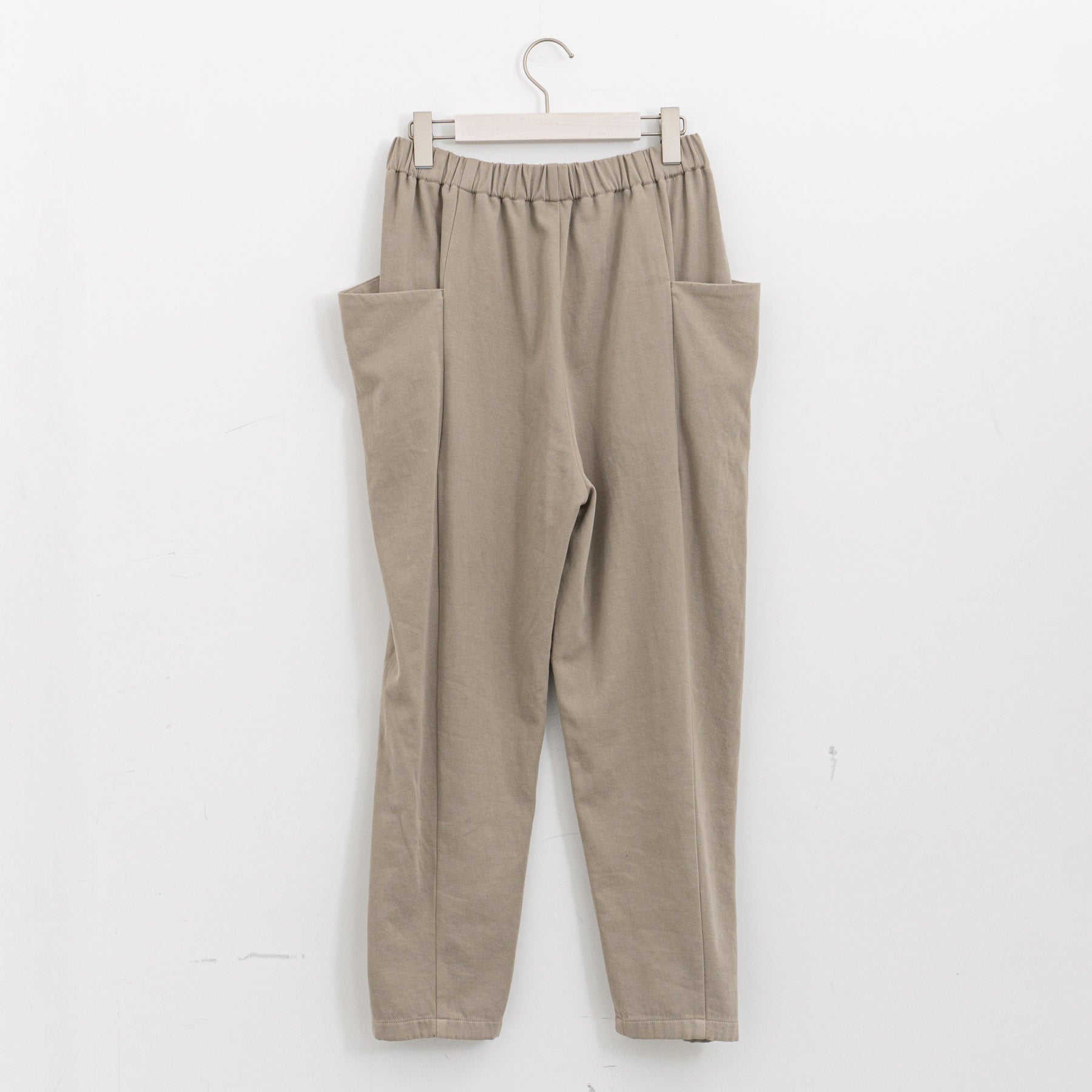 今季はそのしっかりとした生地を活かし、デイリーに穿きやすいカジュアルパンツに仕立てました。 あたたかみを感じる程よい厚みがありながら、肌あたりはやわらかく、やさしい穿き心地。