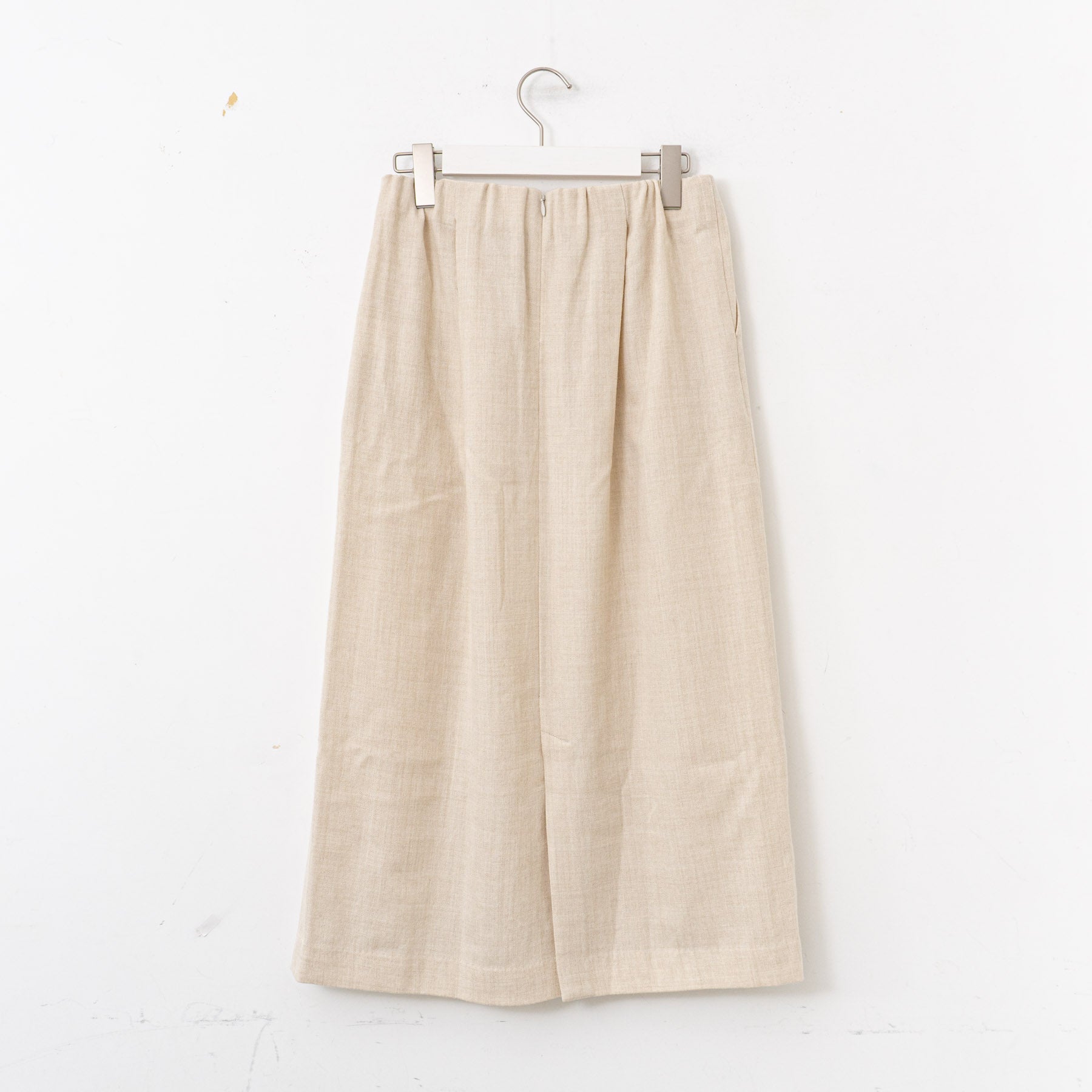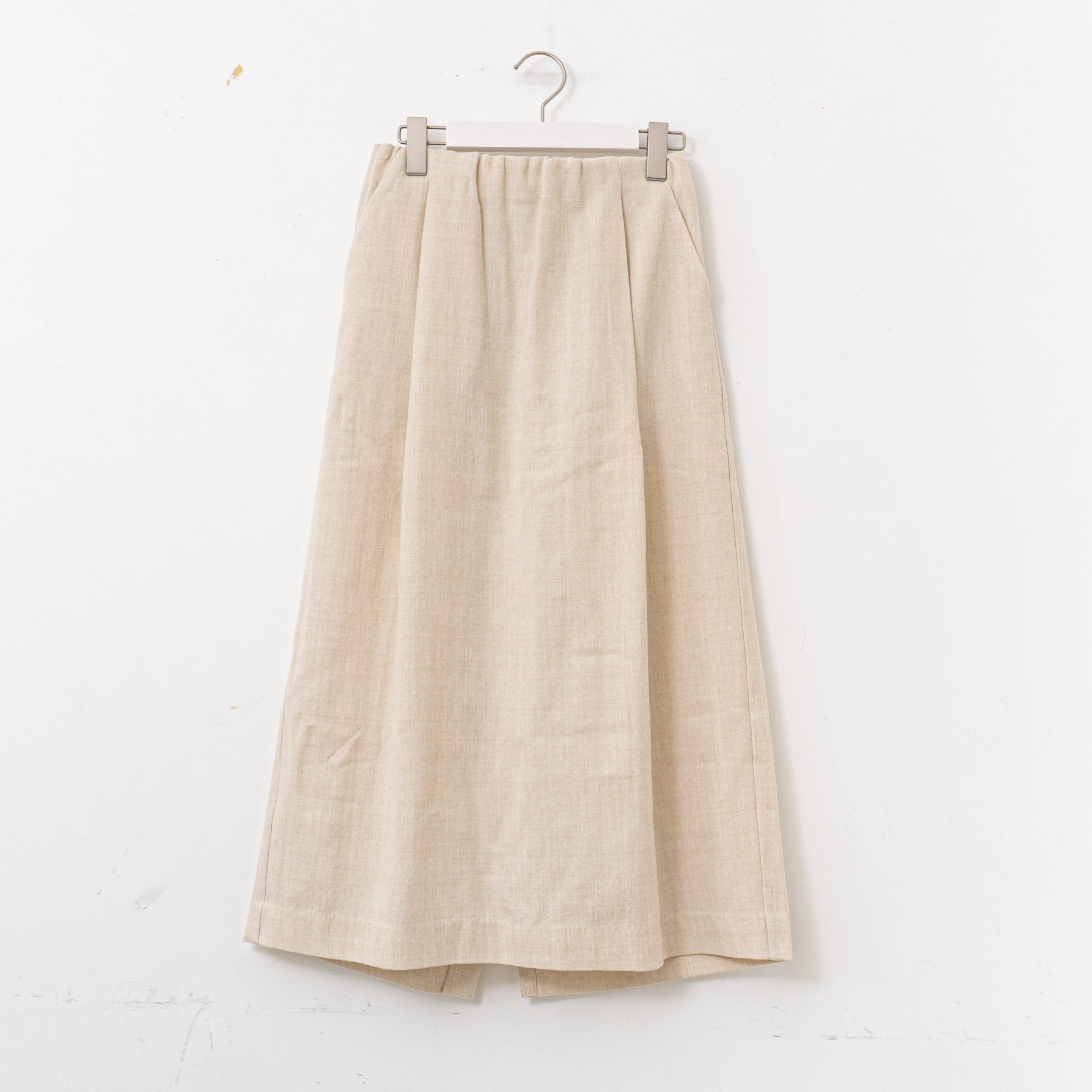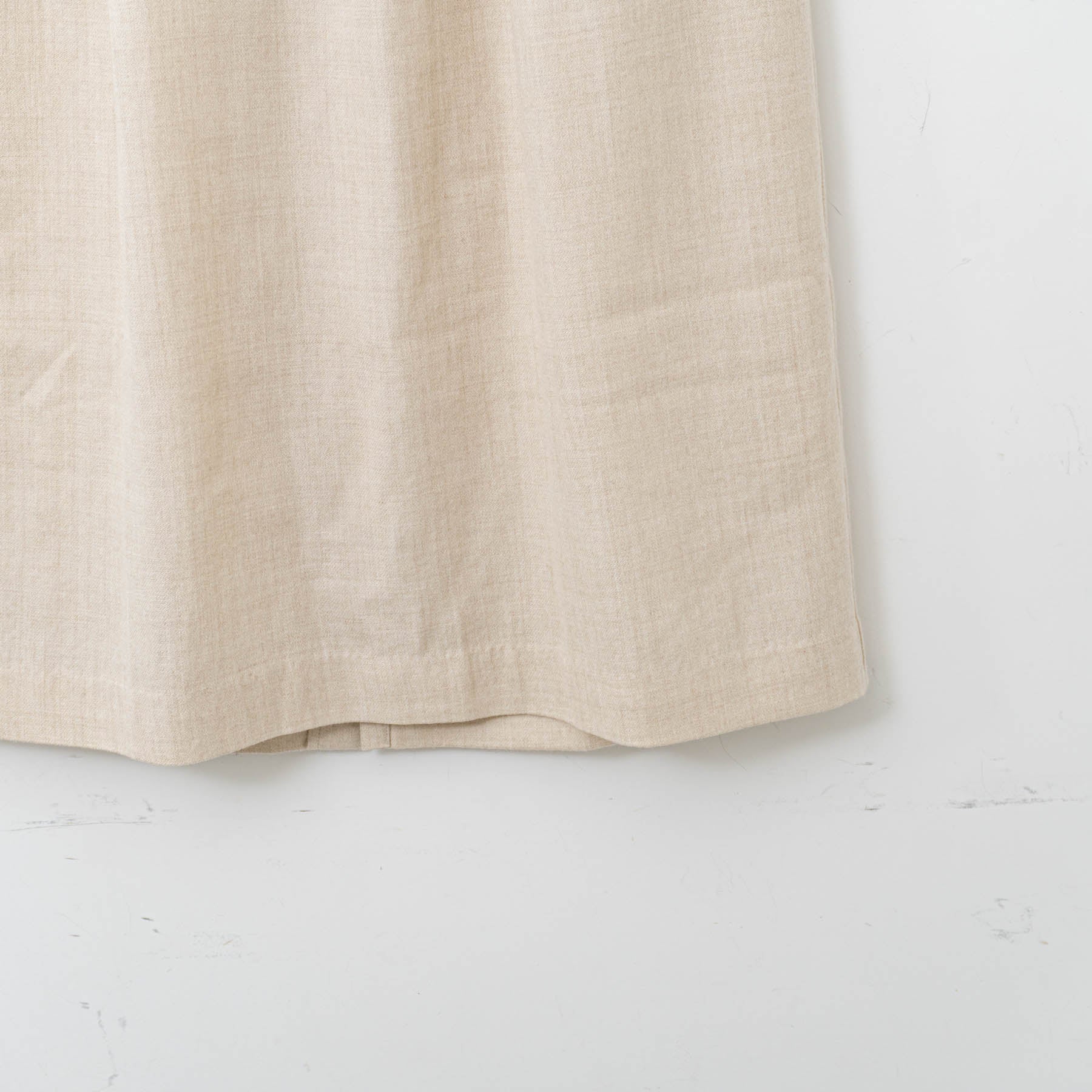 羽毛立ちの少ないウールを使用した生地をしなやかさとふくらみのあるよう仕上げてます。ウールのなめらかな風合いはそのままに薄くてあたたかな生地は身にまとうと心地よさを感じます。上品な印象ながら、普段使いにも程よくリラックスして着られるスカート。