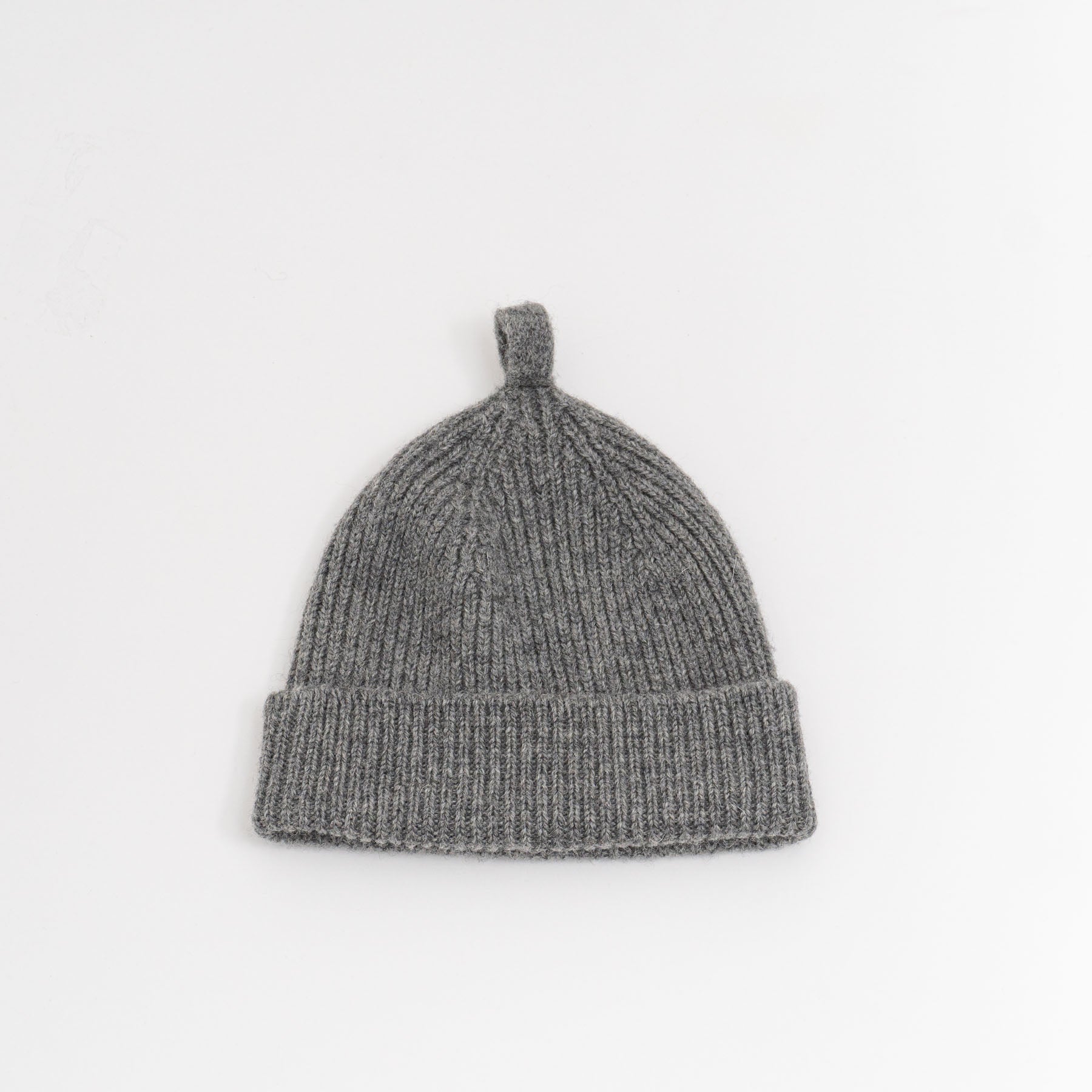 シェットランドウールを使用し、リブ編みに仕立てたスコットランド製のビーニー。 トップに配したループがさりげないアクセントとなる、シンプルで飽きのこないデザインです。