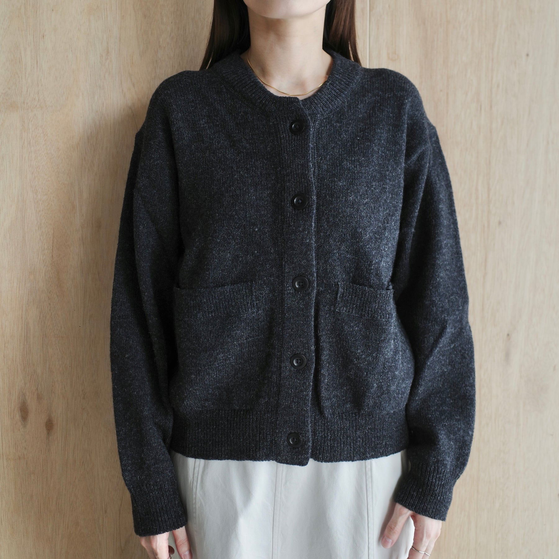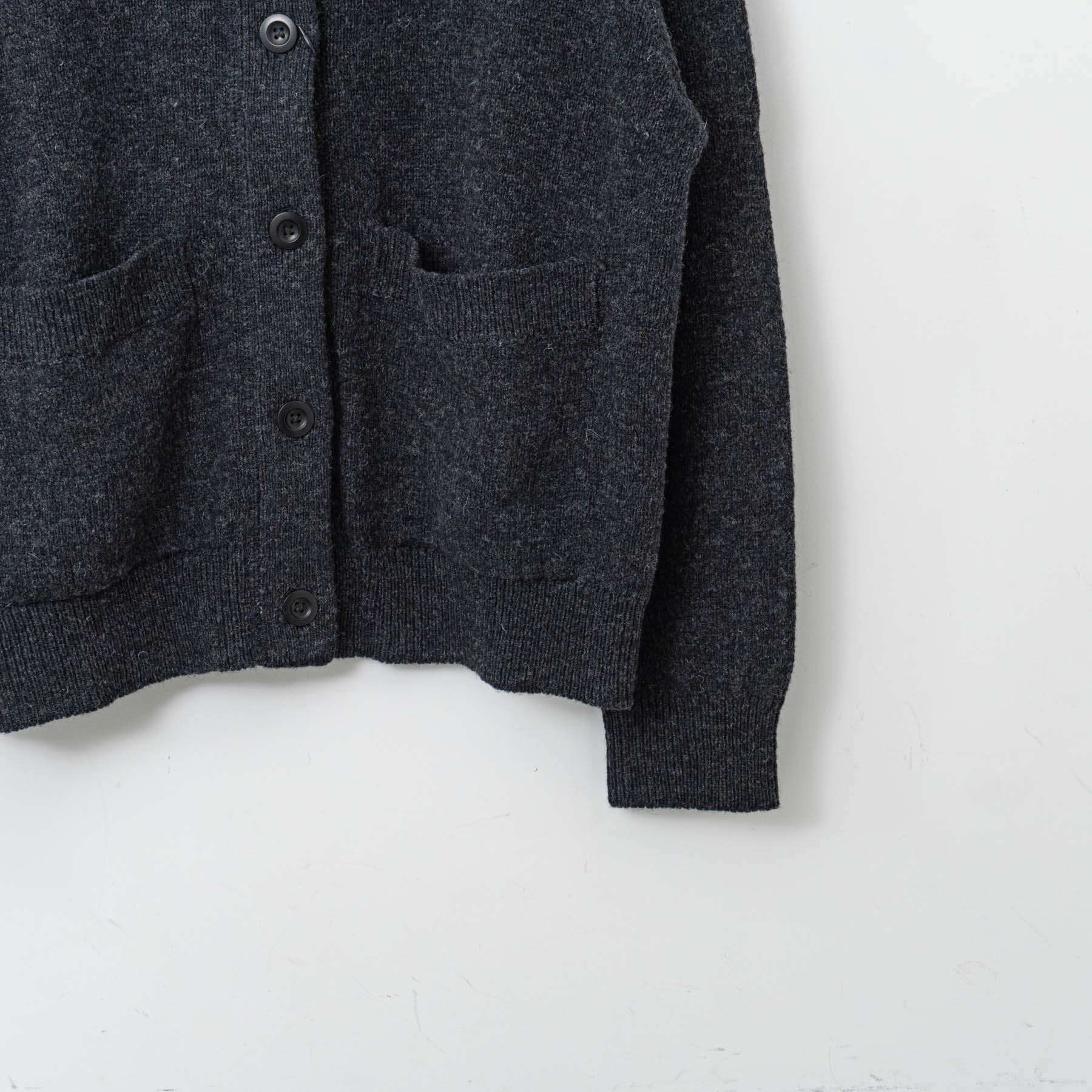 シェットランドウールの本来の風合いをそのまま生かしたカーディガン。クルーネックのシンプルなデザインで、大きめの腰ポケットがポイント。