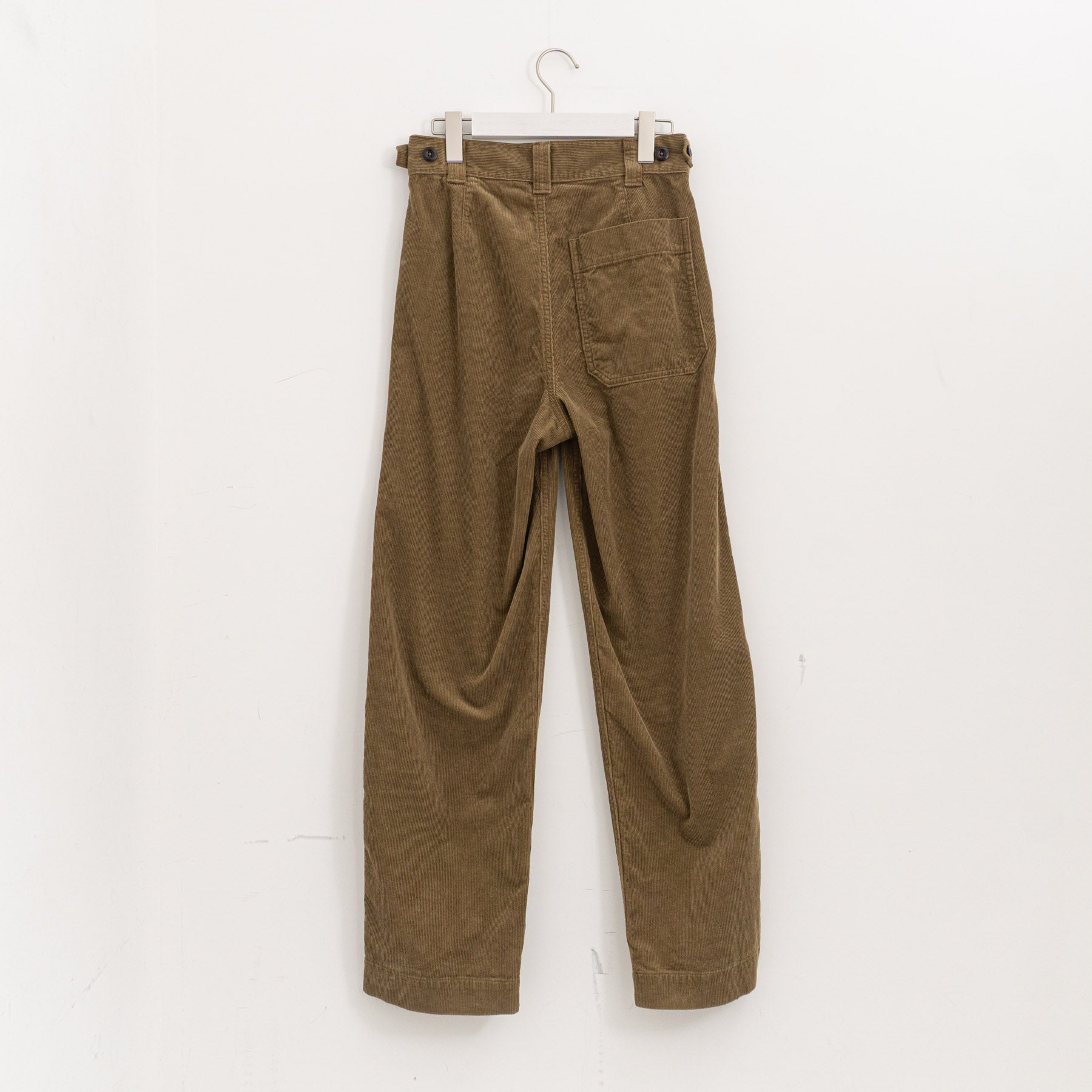 リラックス感のある2タックのウエストに、ストレートシルエットを組み合わせたデザイン。ヴィンテージアイテムを踏襲したウエストアジャストがアクセントになり、コーデュロイ素材と好相性な一本。
