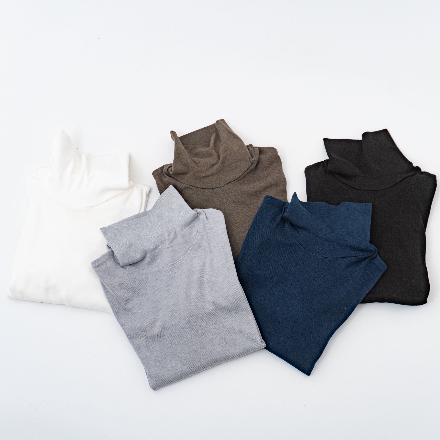 上質なスーピマコットンを使用したインナー。カシミア混で薄手でありながらも暖かく、とてもやわらかな肌触りです。