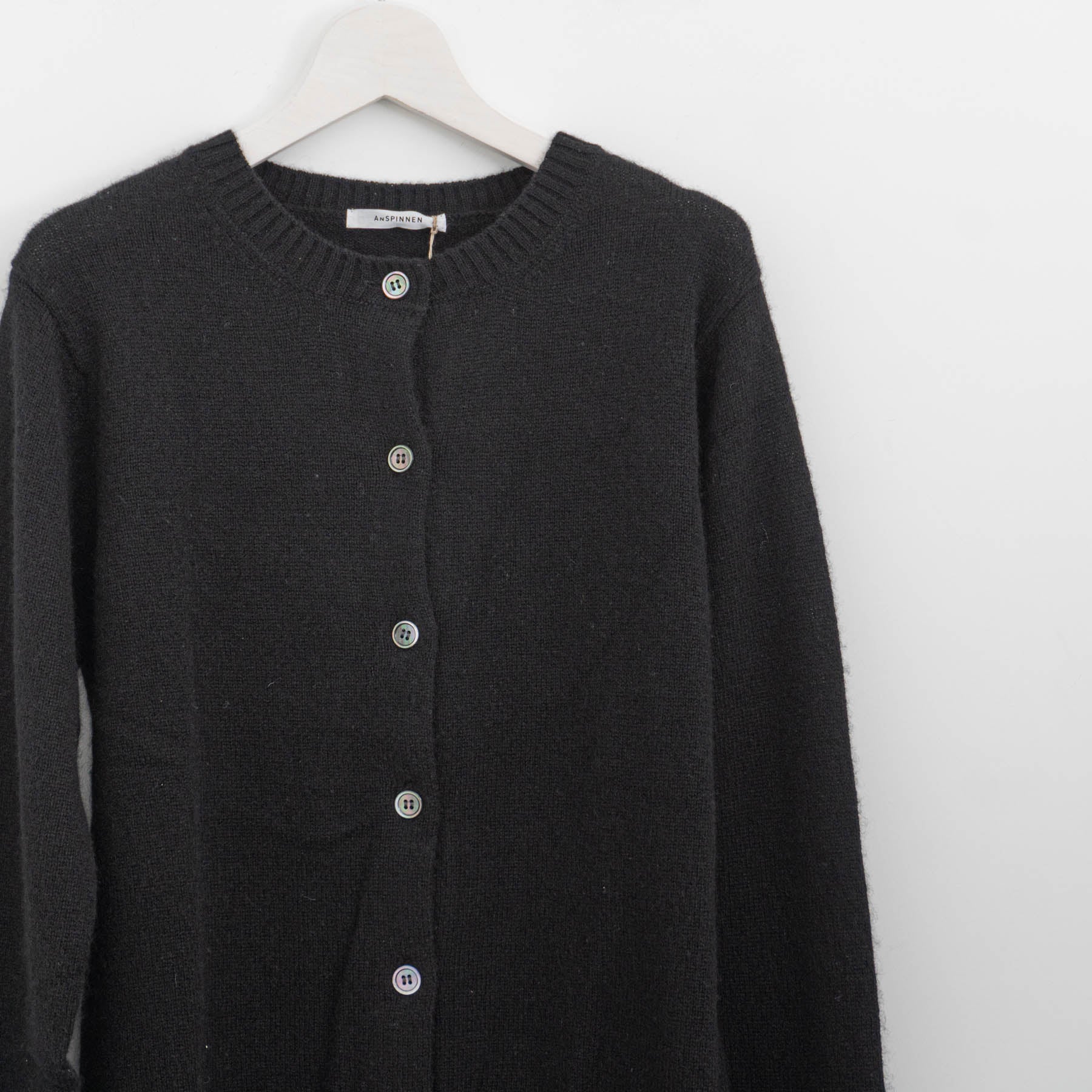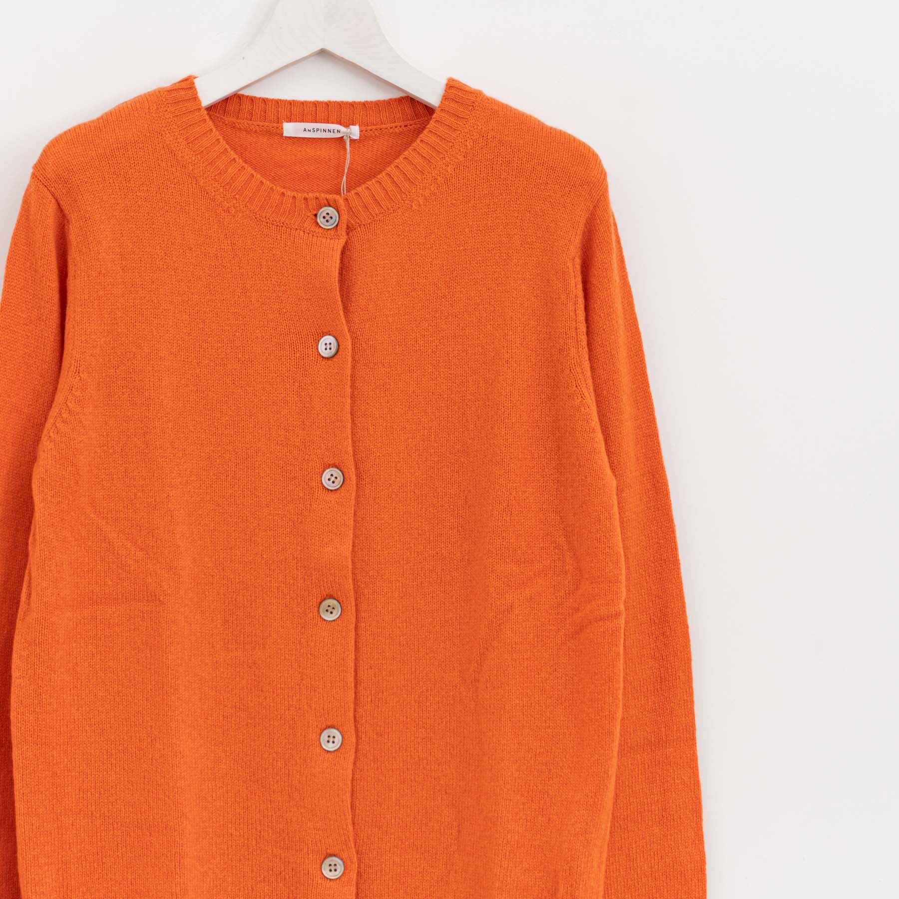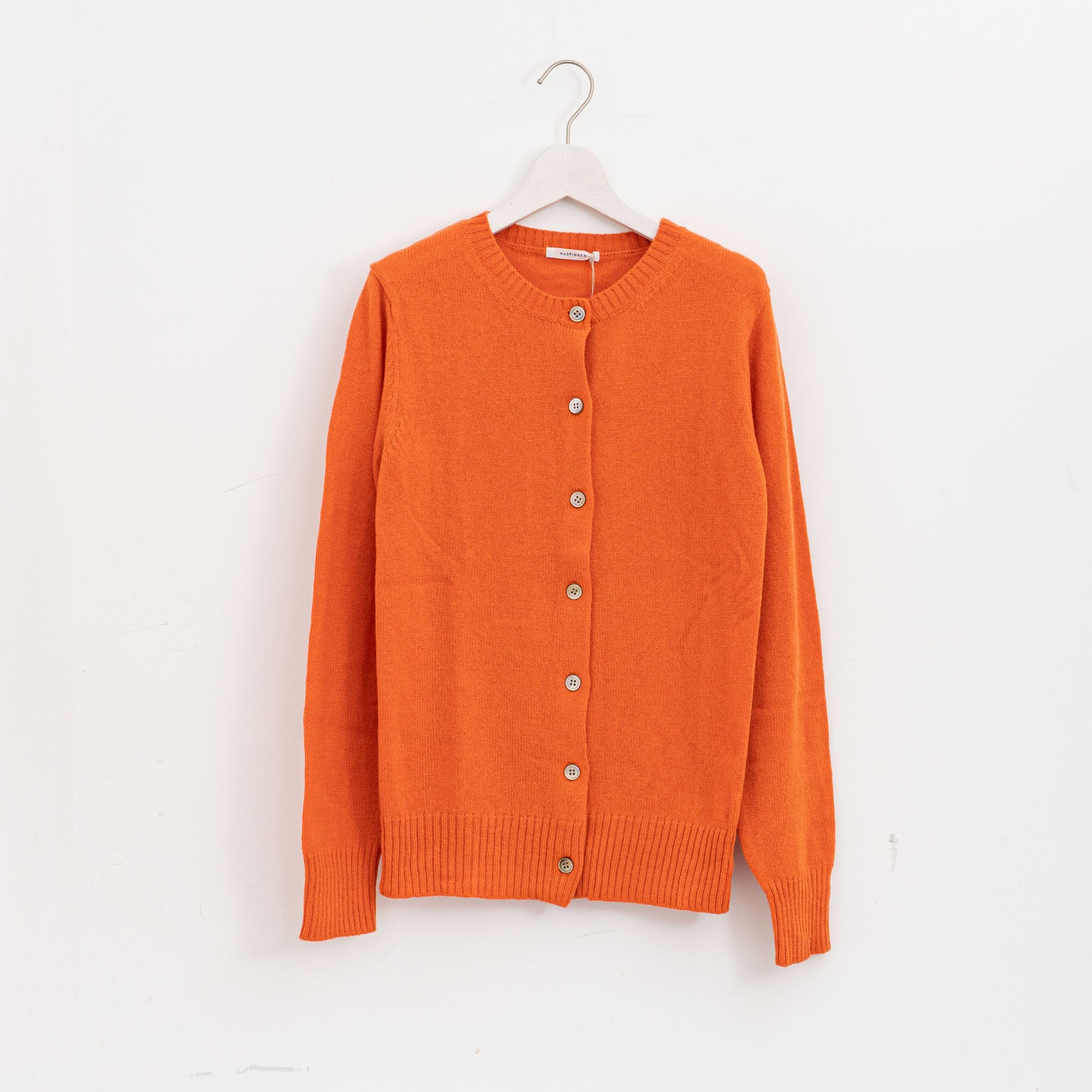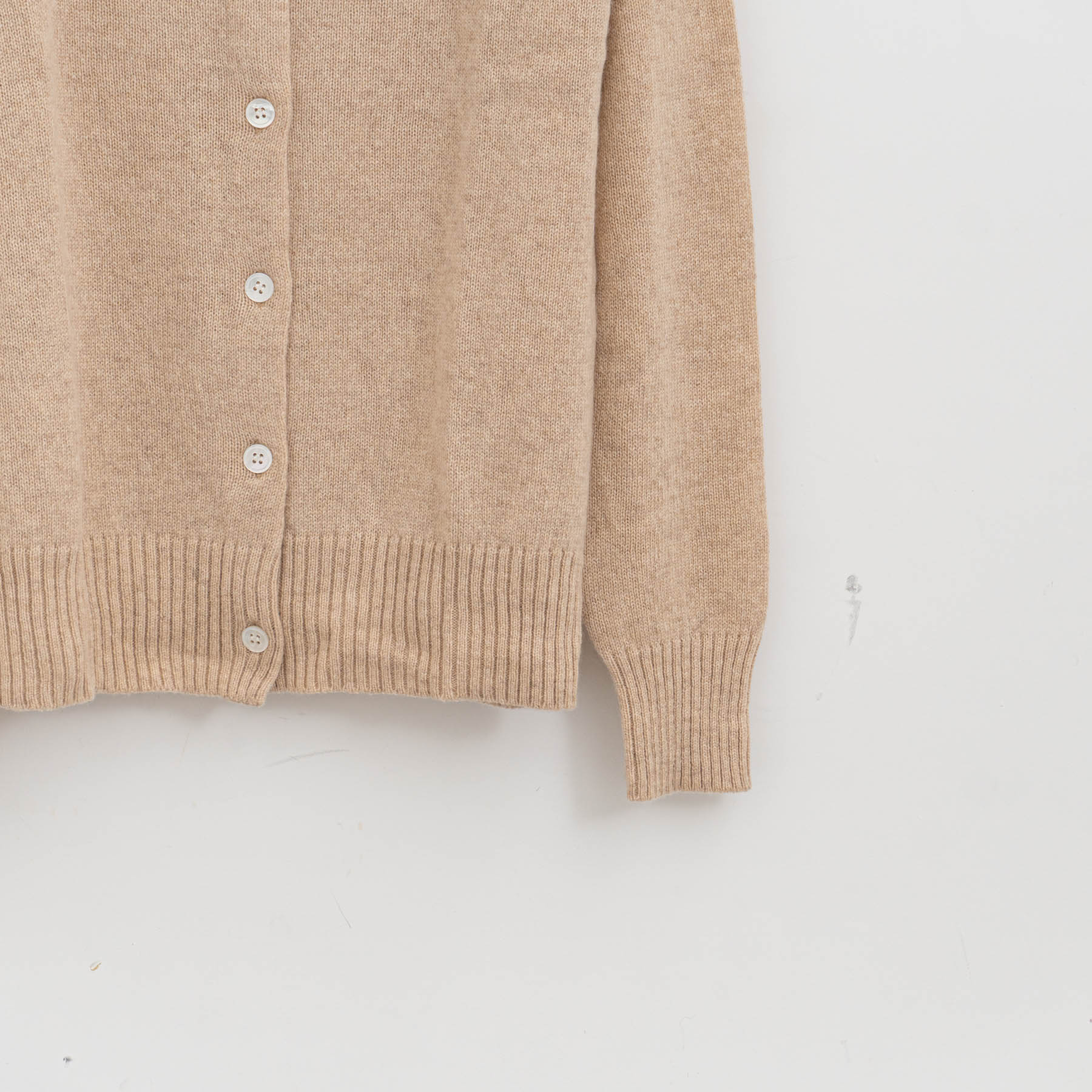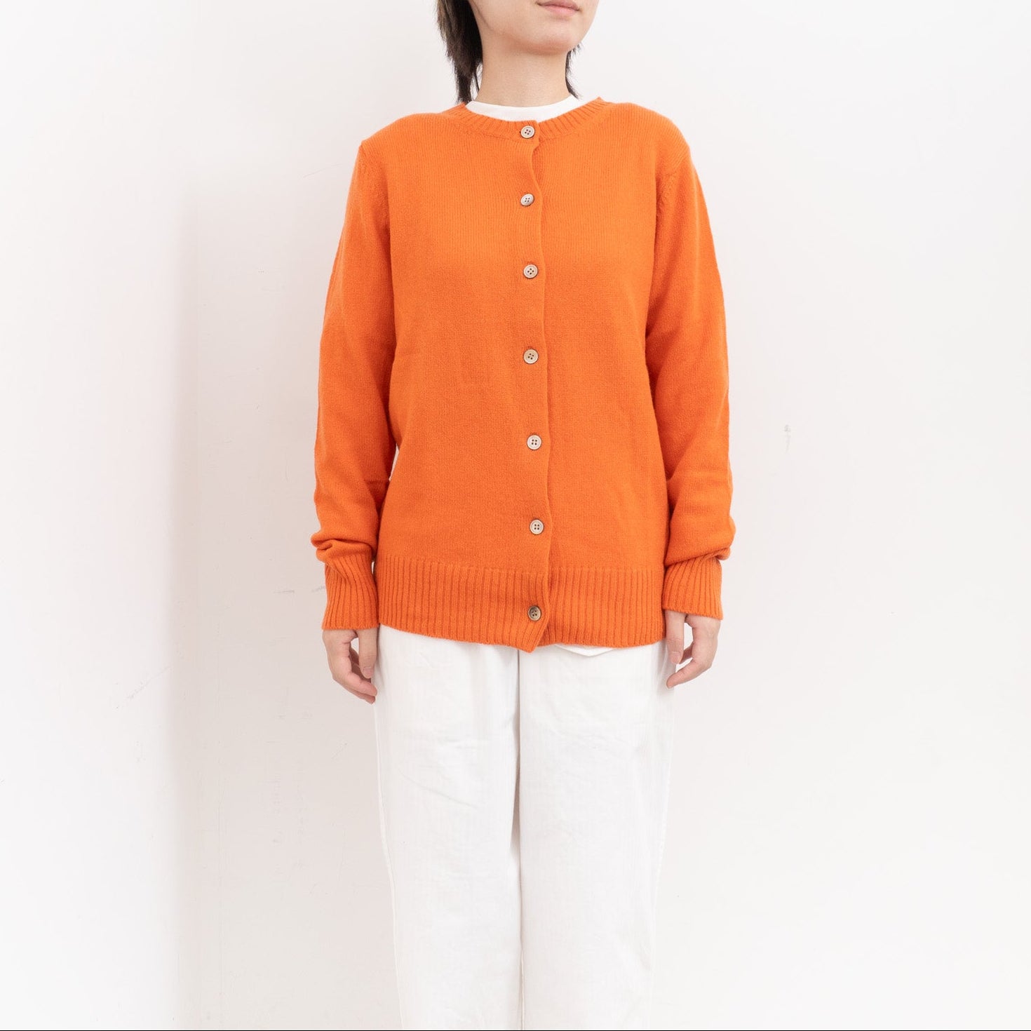 自社制作の20番手ファインソフトカシミヤ糸を使用したクルーネックニットです。26番手より太い糸をあまく編み上げることで空気を含み、ふんわりとした膨らみを感じられる一枚。