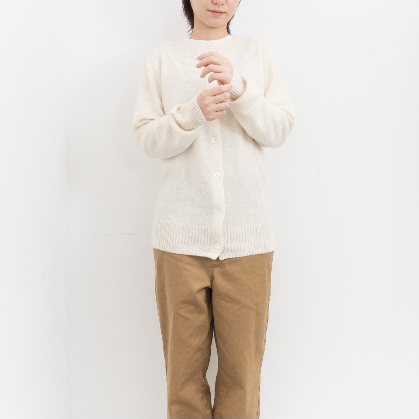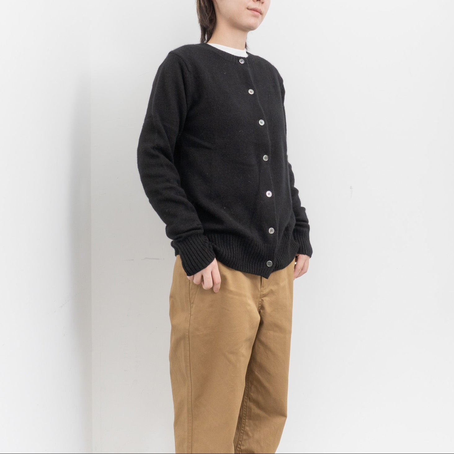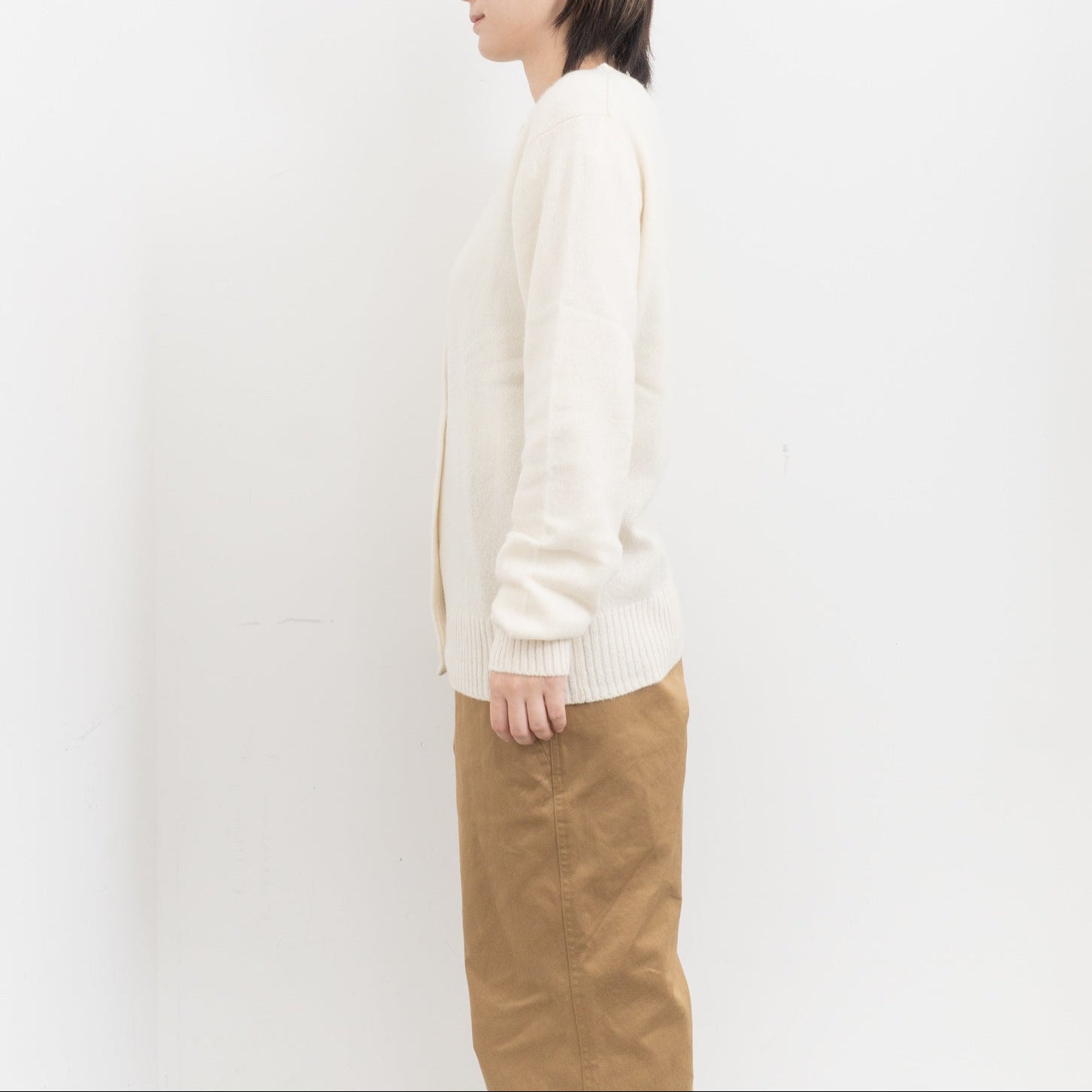 シルエットは程よい身幅と着丈。シンプルに仕上げたデザイン。糸が持つ上質な風合いや発色が際立ち、軽やかで暖かな着心地を実感いただくことができます。