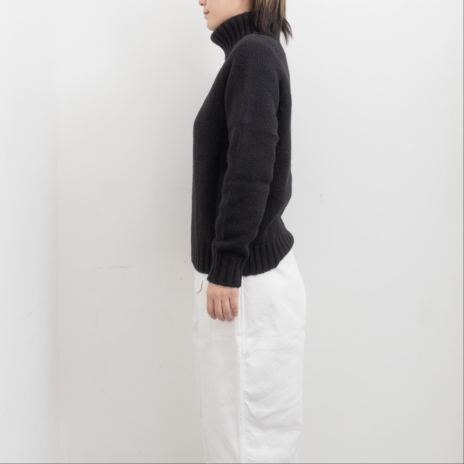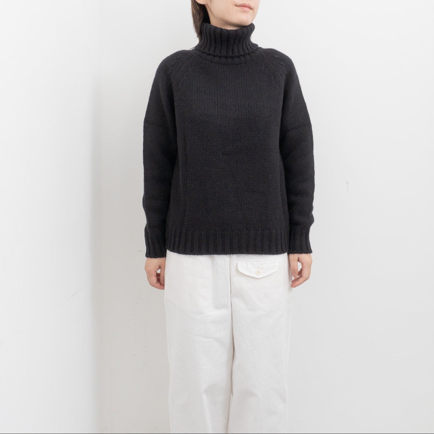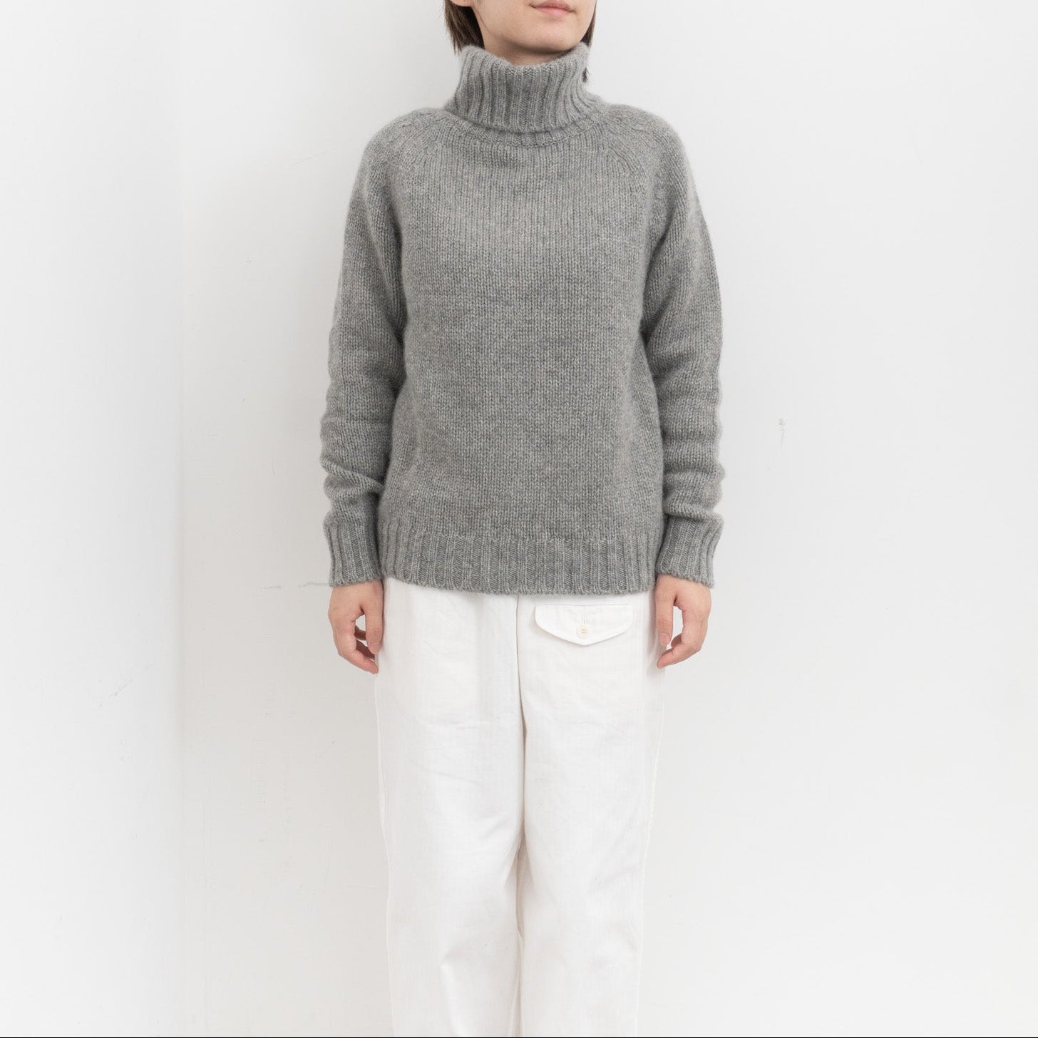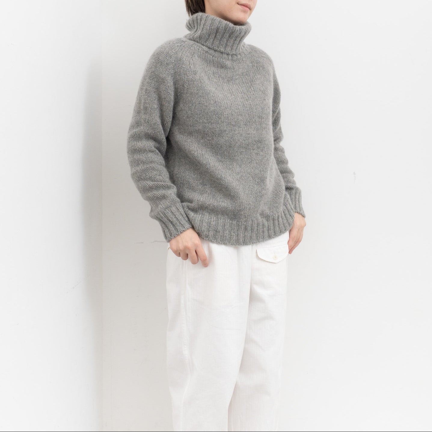 チベット高原、標高4,000〜6,000mの厳しい自然環境で育つヤク。そのヤクの柔らかな産毛だけを贅沢に使用し、上質な糸を紡ぎました。ローゲージでざっくりと編み上げたニットは、ふんわりとしたぬくもりと上品な風合いが魅力です。 ヤクの毛糸は、カシミヤに匹敵する暖かさとしなやかさをもち、独特のぬめり感が心地よい肌触りを生み出します。優しい艶と自然な柔らかさが織りなす上品な印象は、ヤク素材ならでは。 高い保温性を持ちながらも蒸れにくく、冬の寒暖差にも快適に対応。上質な暖かさを、日常に取り入れていただける一着です。