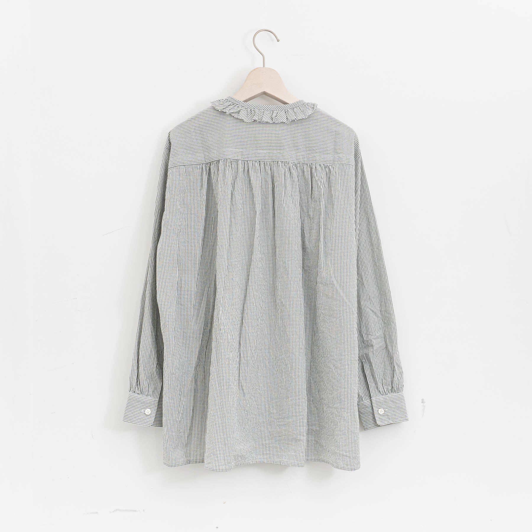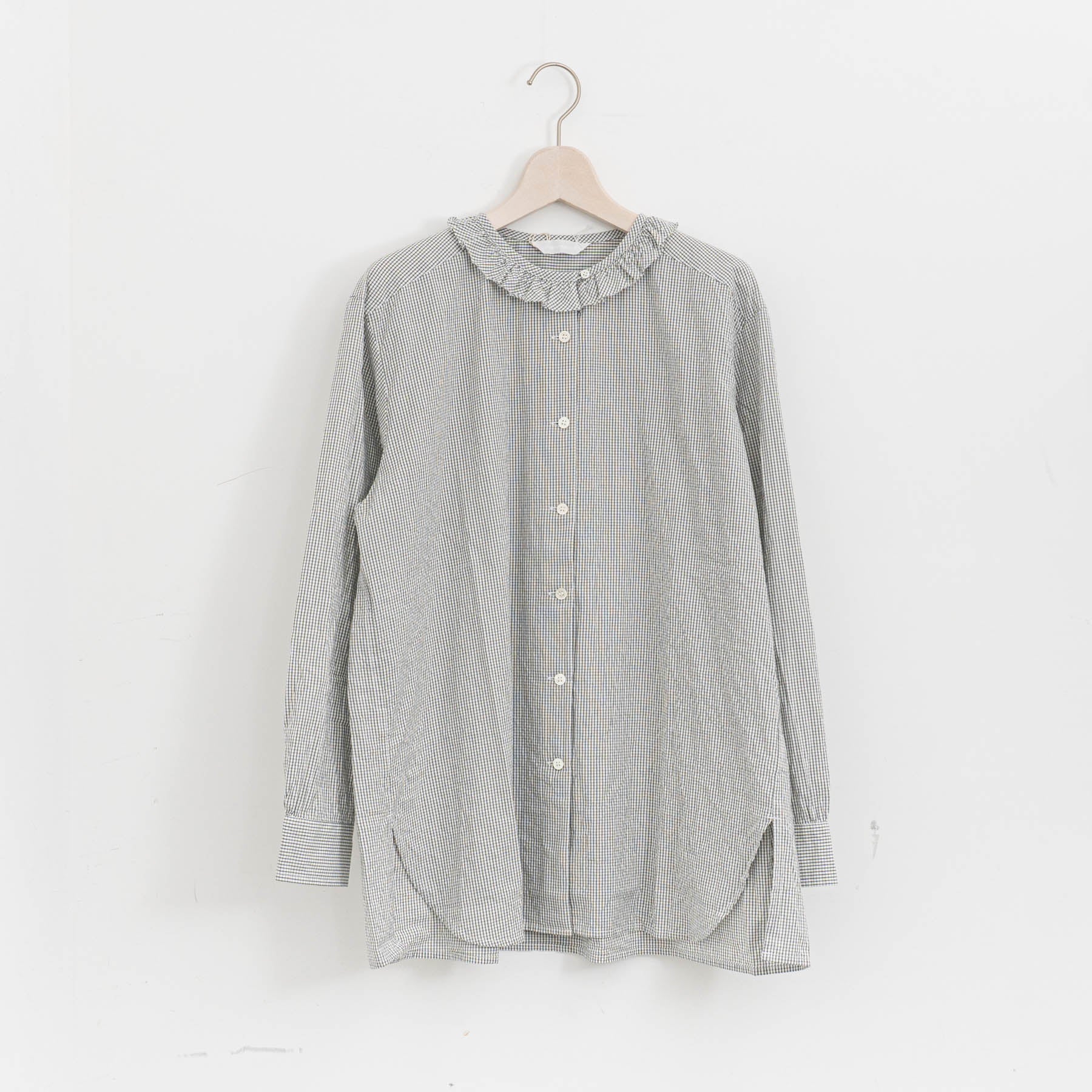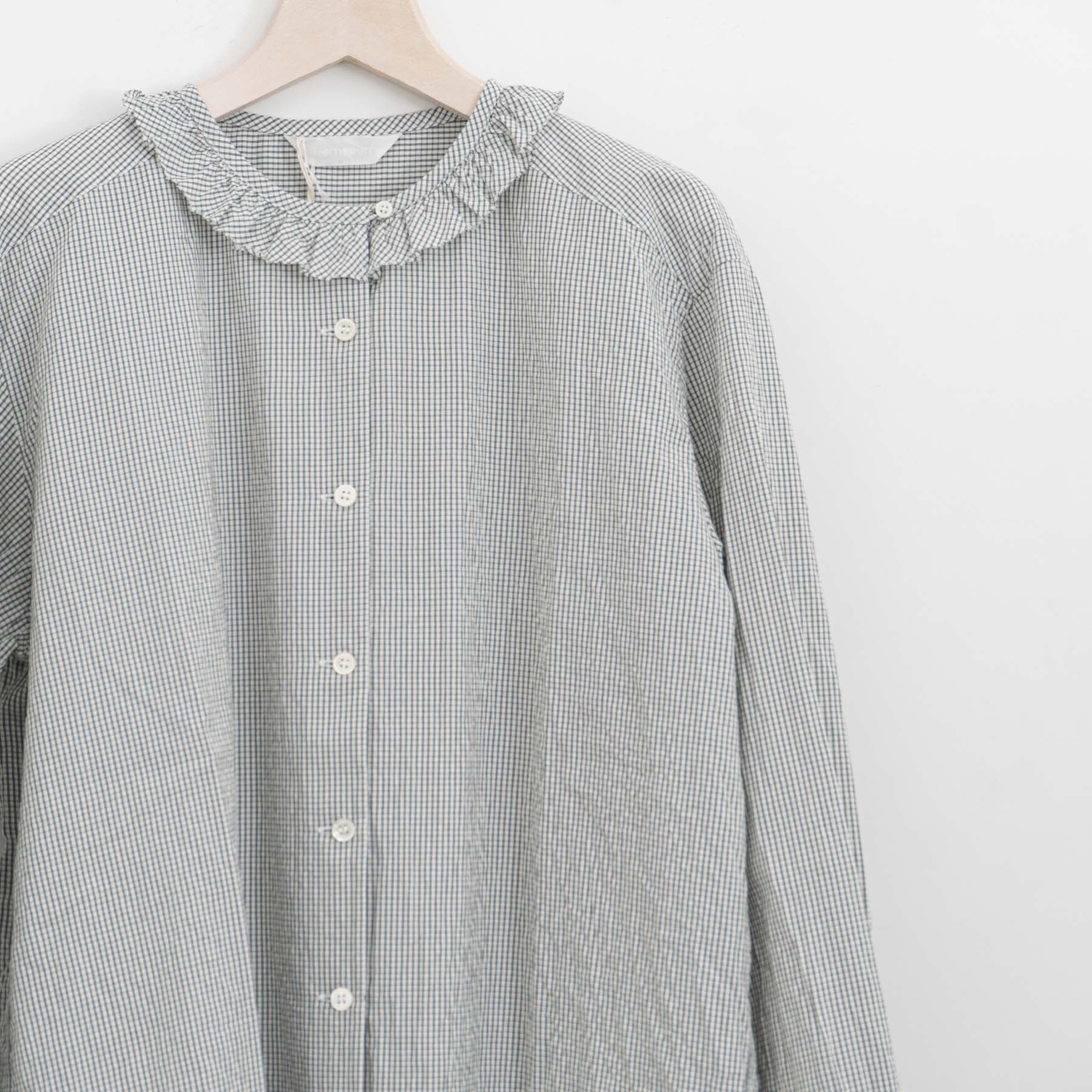 ハリのあるハイカウントクロスを使用した、homspunらしいフリルブラウスです。