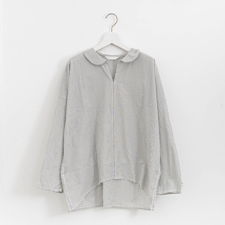 homspun / ハイカウントクロス丸襟プルオーバーブラウス col. ストライプ 252-5749-suomi