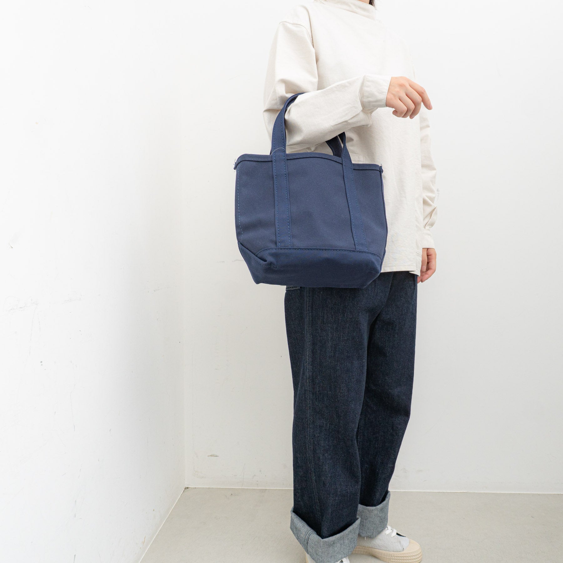 本体、ボトム、ハンドルを同色で仕上げたソリッド・カラー・トート。24オンスのコットン・キャンバス地を使用し、サイドやボトムは頑丈なナイロン糸で縫製した、とても丈夫なつくりです。