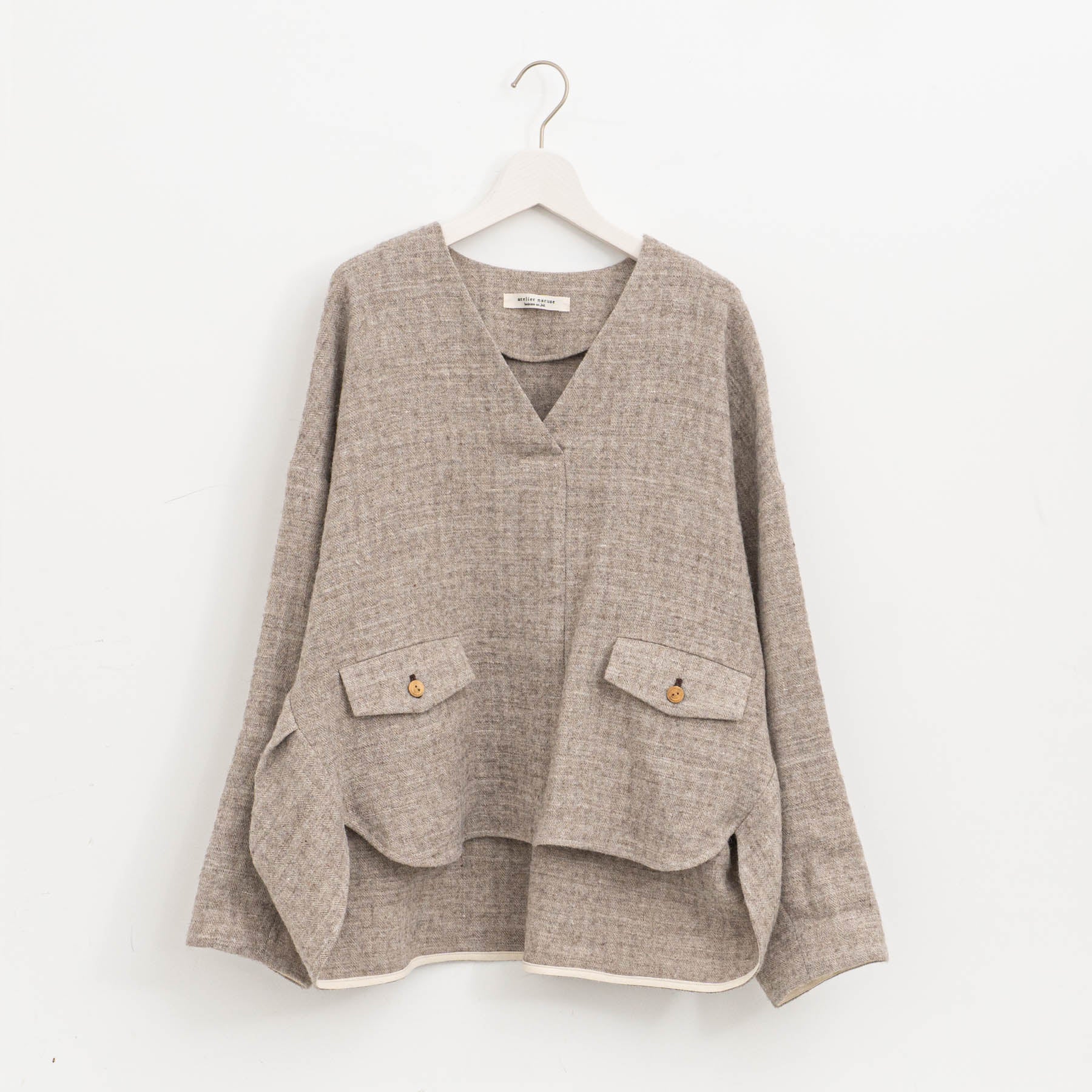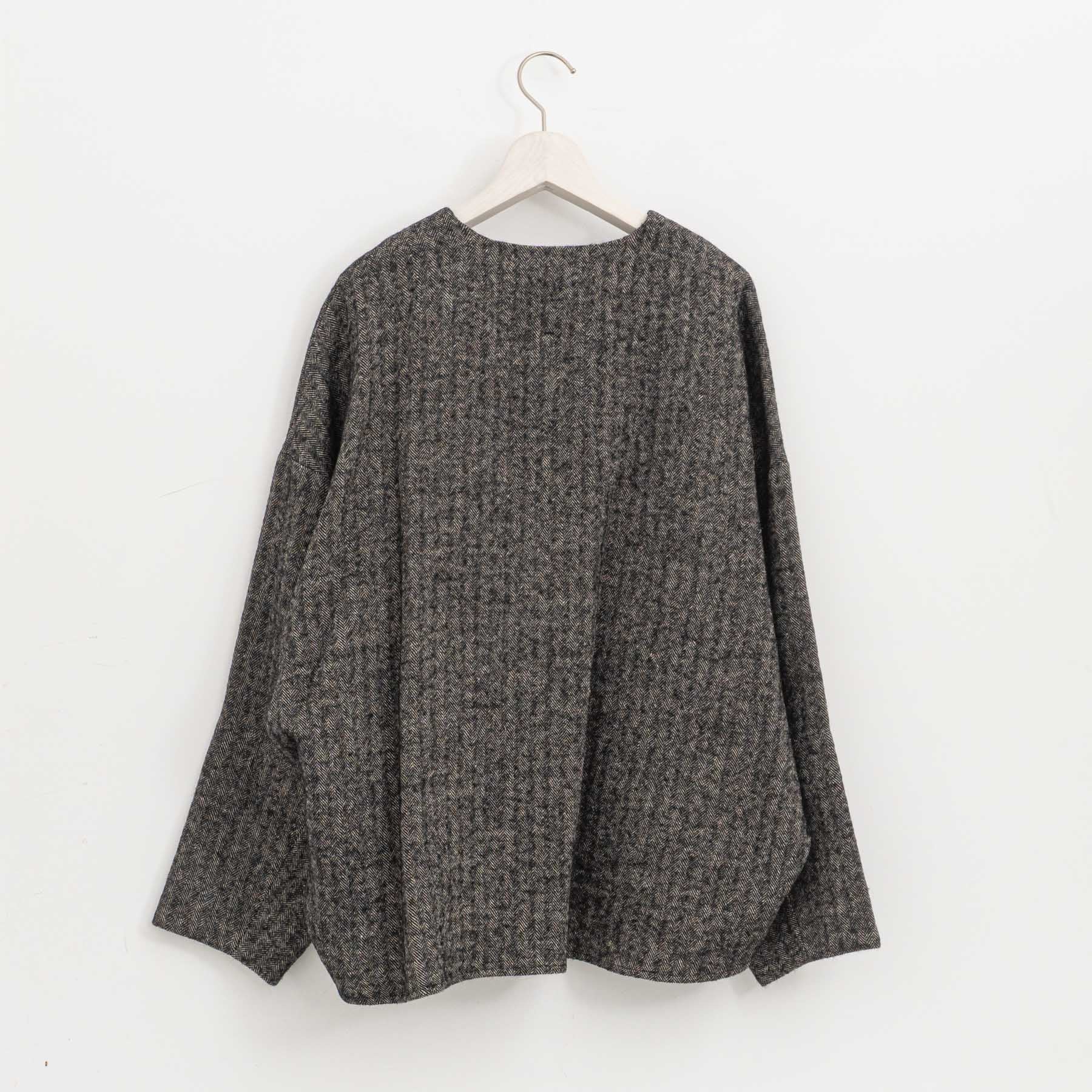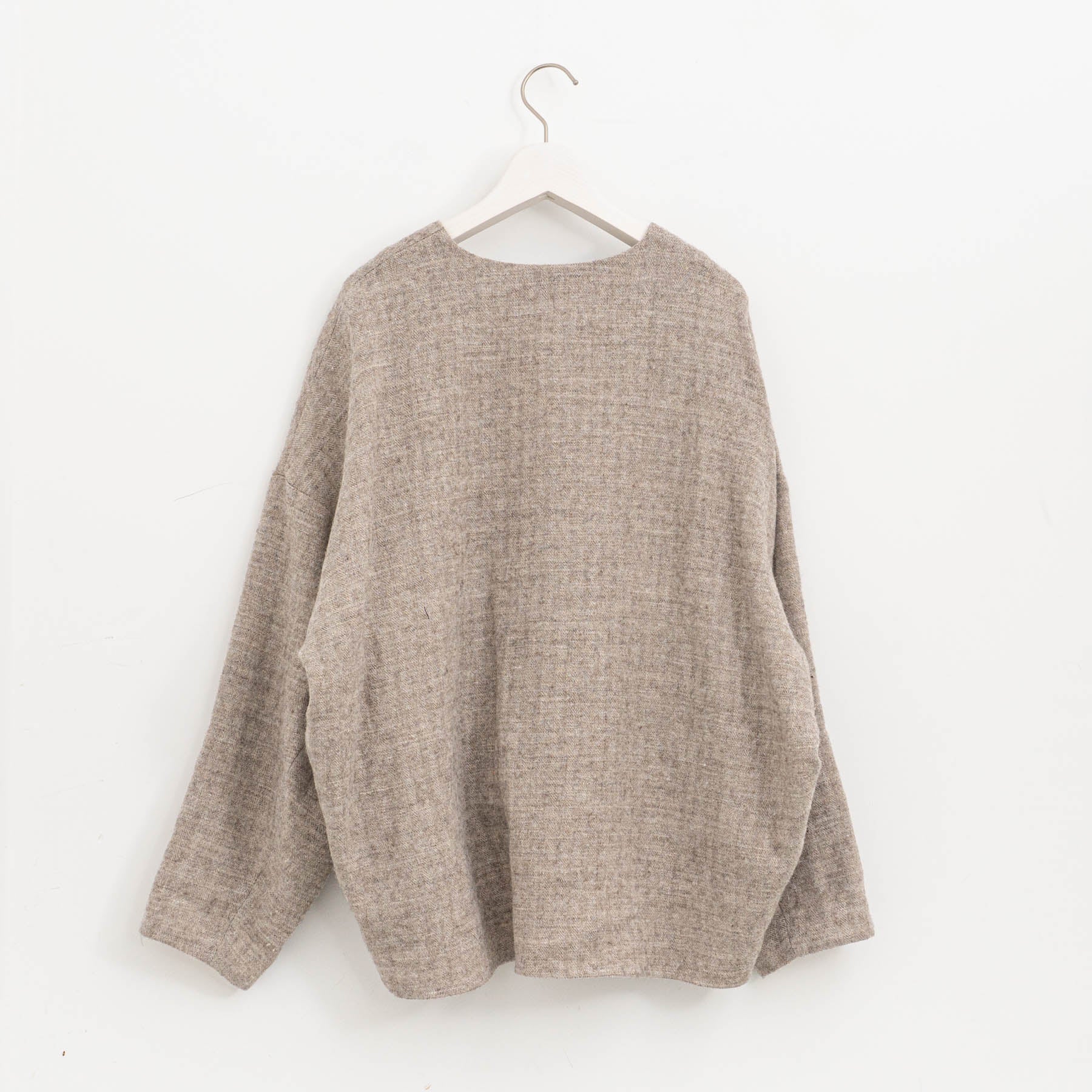 コーディネート次第でカジュアルなシーンにも、モードなシーンにも対応できます。 さまざまなシーンで着こなしを楽しめる、シェットランドウールリネンのスモックです。