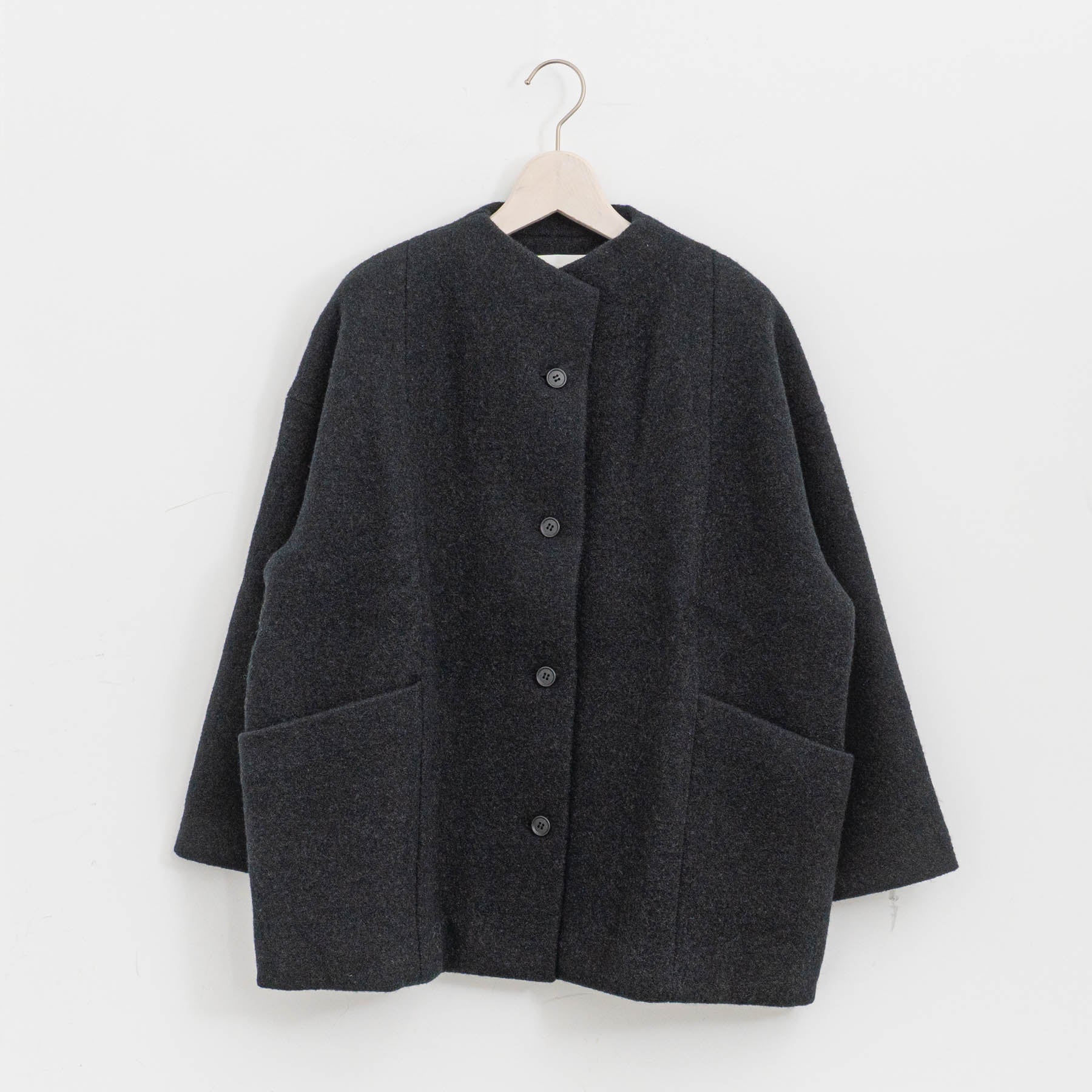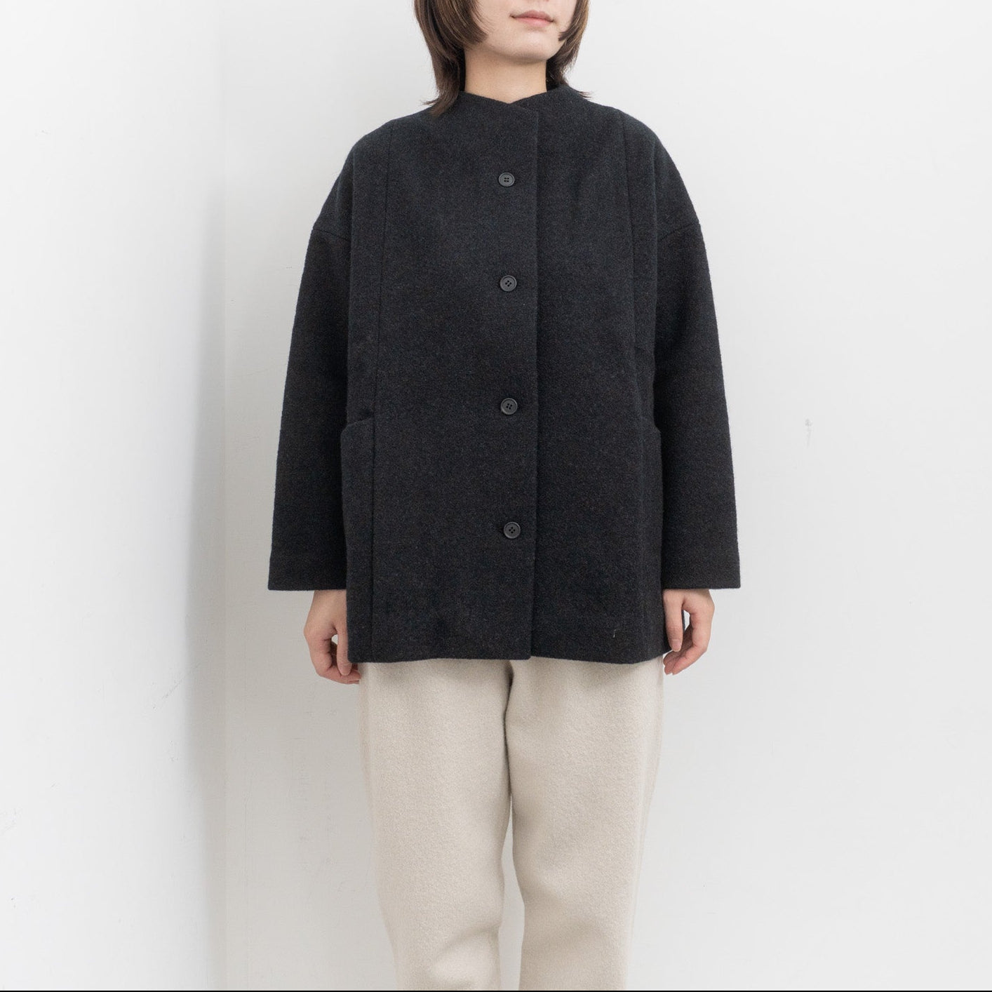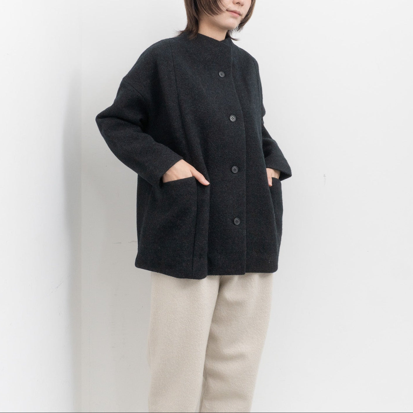 ヒップが隠れるほどの着丈で仕立てたショートコート。