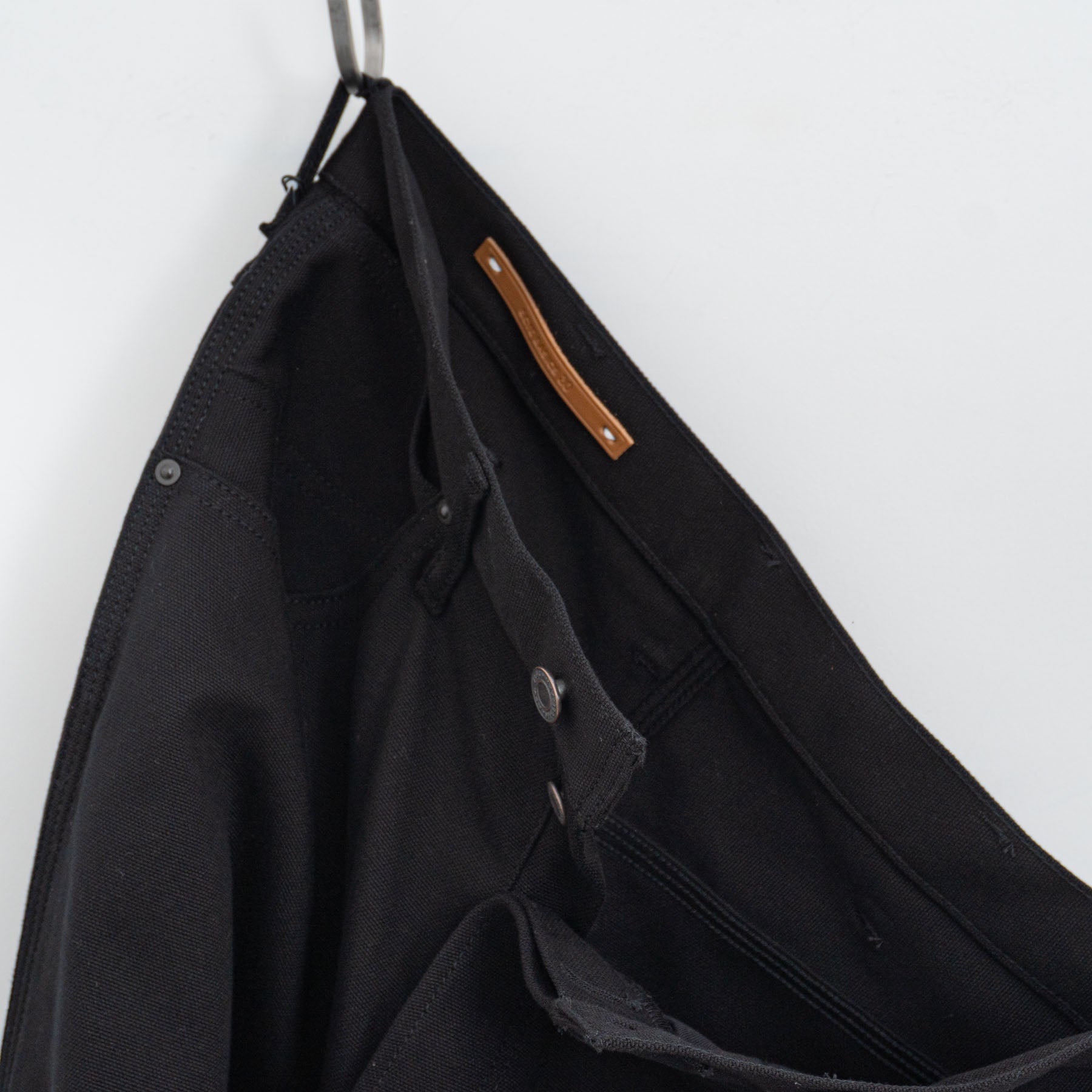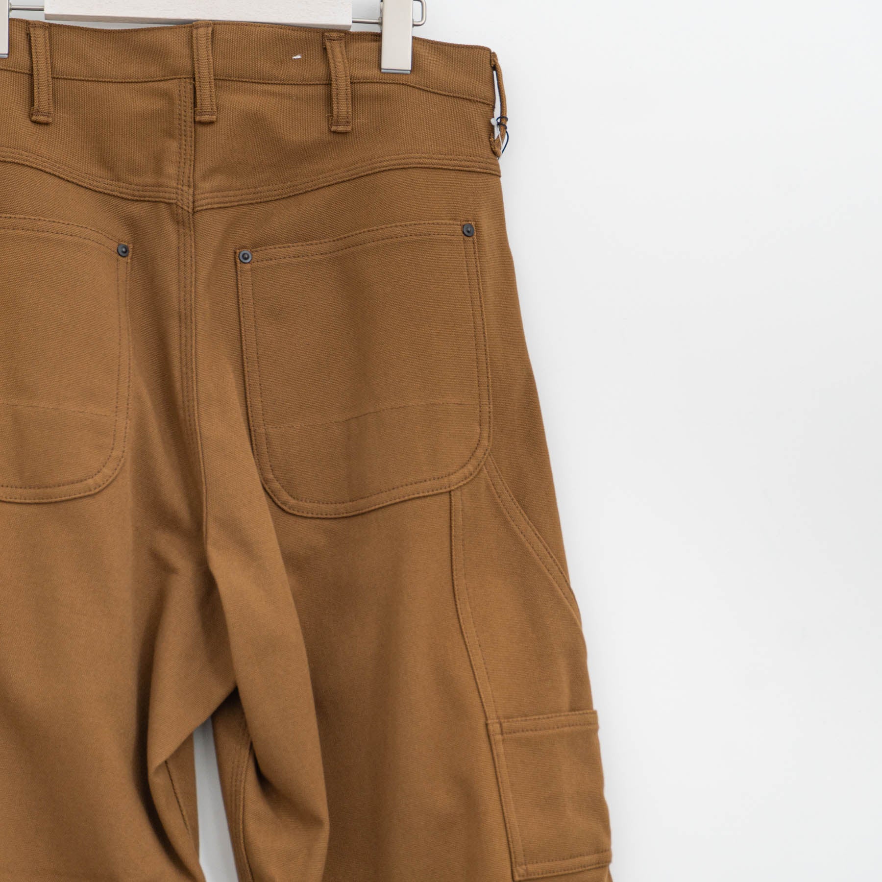 無骨なカーペンターパンツをベースに、SCYE BASICSのフィルターを通して洗練された一本に仕上げたモデル。ワークパンツらしいツールポケットやハンマーループといったディテールを踏襲しつつ、上品さを感じるクリーンなシルエットが魅力です。 素材には耐久性・耐摩耗性に優れたタフなダック生地を採用。さらにポリウレタンをブレンドすることでしなやかなストレッチ性を持たせ、快適な穿き心地を実現しています。